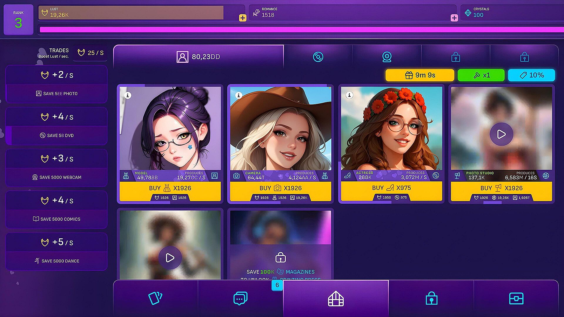 Create a harem of sexy babes from every corner of your imagination. Open packs, meet girls and seduce them to unlock hundreds of steamy sex scenes. From naughty secretaries to goth babes, gamers and dragon girls, each one’s got a story… and no clothes by the end of it.