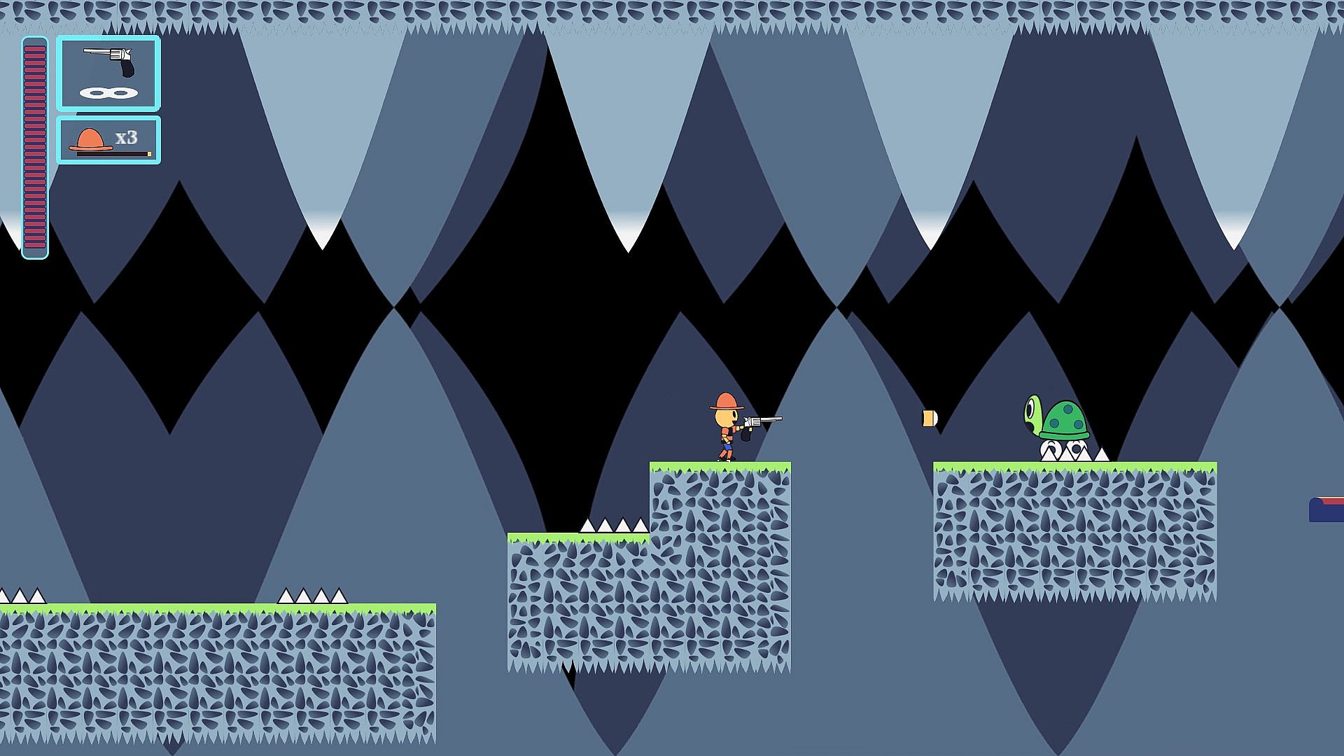 Jump and shoot your way across six levels to recover six weapons in your fight against the McCoy gang. Fight in harsh environments across the territory to restore peace and order to the town of Little Brick. Every boss has a weakness. Can you figure them all out?