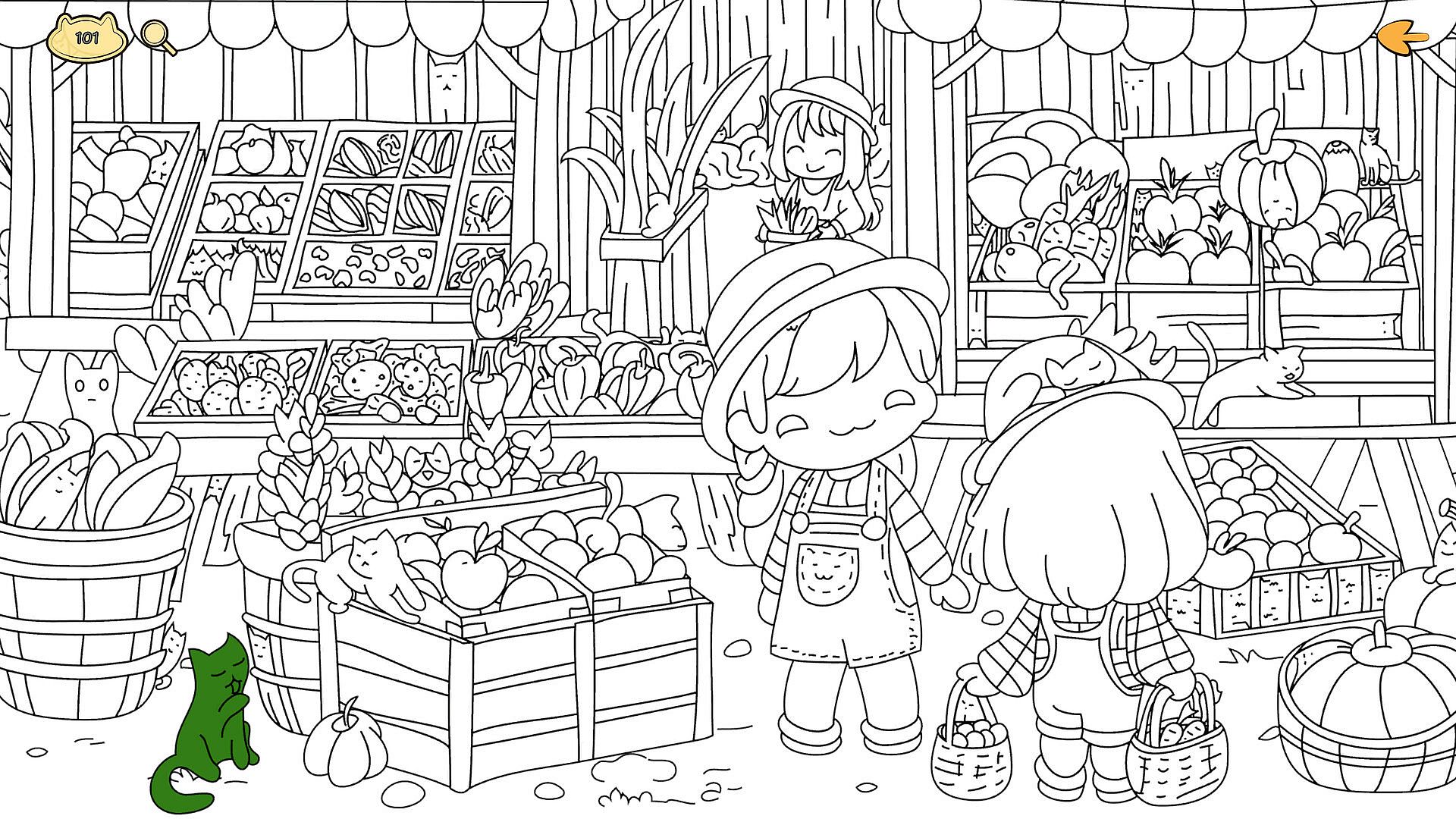 Wander through a quaint small town brought to life with hand-drawn illustrations and gentle animations. From cozy markets to lively town squares, each of the five unique scenes is filled with cleverly hidden cats waiting to be discovered. Some peek from unexpected places, others blend right into the scenery, you’ll need a sharp eye to find them all.