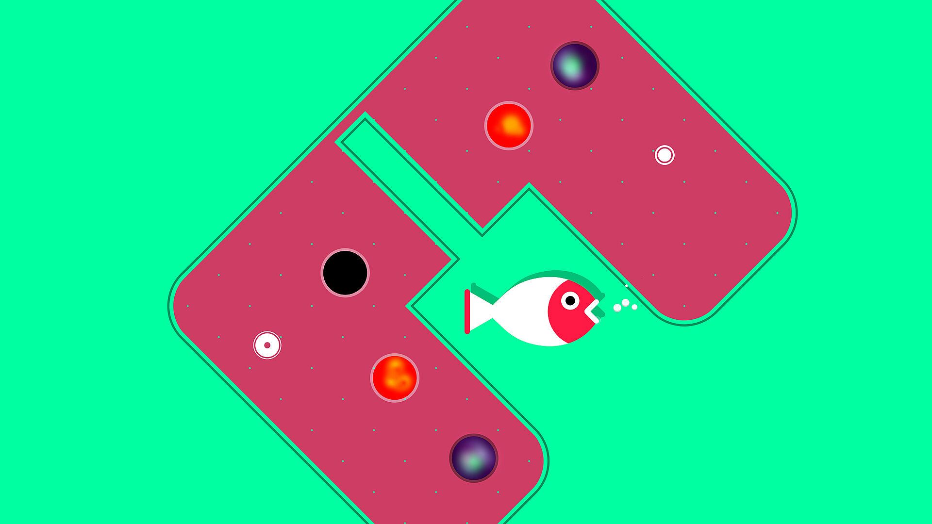 Hit a puck to sink balls into holes. You’ve got a limited number of shots, and each stage gets tougher as new mechanics are introduced.