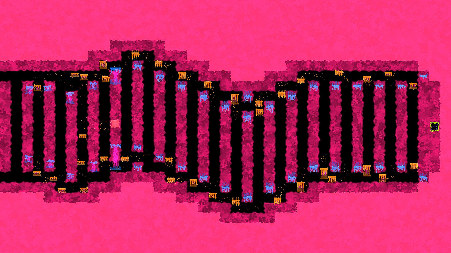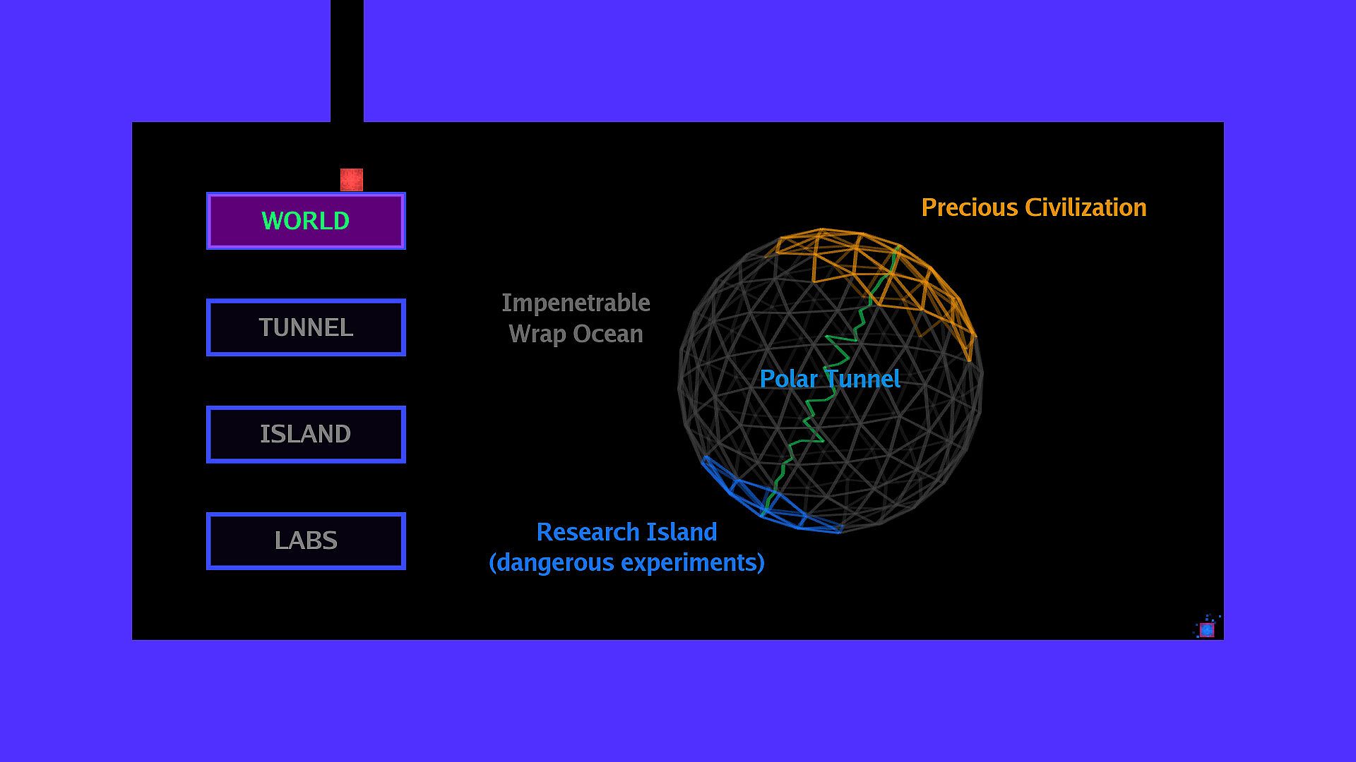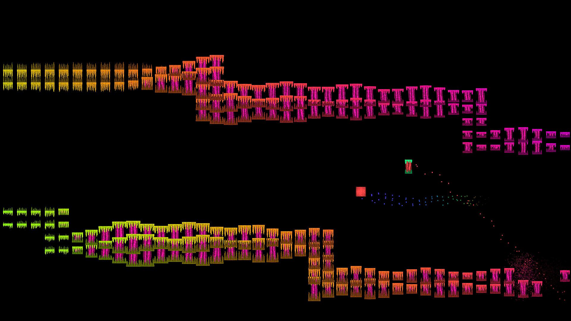 • All graphics are procedural. Aside from a text font, graphics have been programmed using math. This process is exploited to provide a distinct visual experience, which evolves alongside your journey.