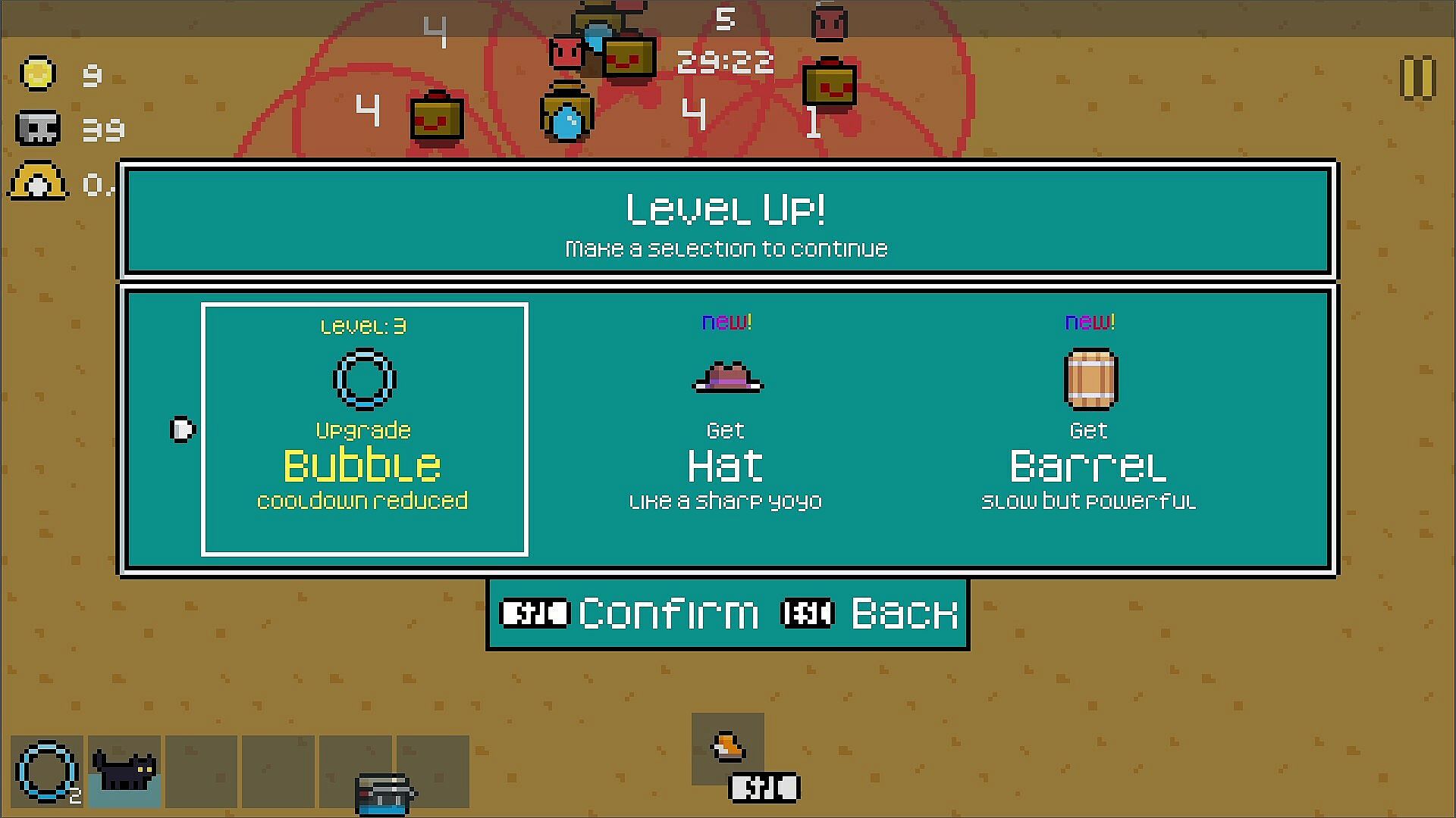 Smol Survivors is a 2D reverse bullet-heck where smol blocks have become lost and need to find their friends and a way back home while fighting through hordes of enemies.