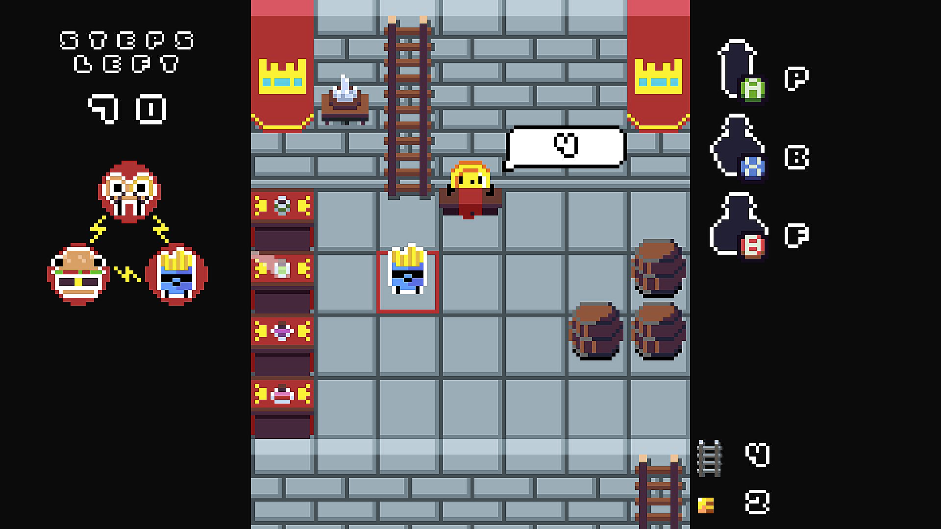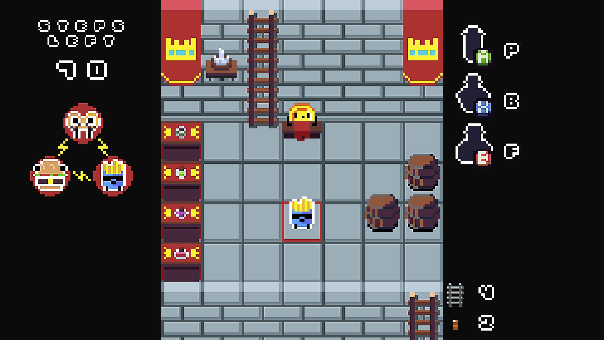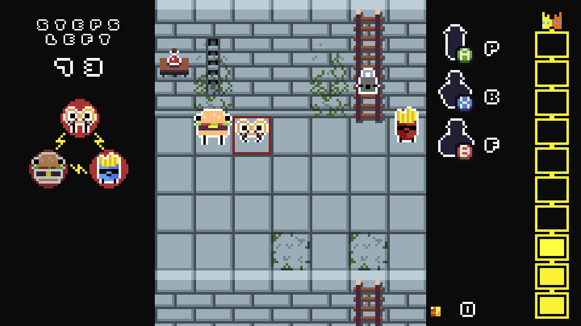 What a horrible night to have a curse! You have only 100 steps to reach the top of Snacky Tower and to defeat the evil Salt Lord. Every step changes your form, but you can only defeat enemies in the right one. To use the least amount of steps, while trying to reach the next floor, you need to plan carefully – or get help.