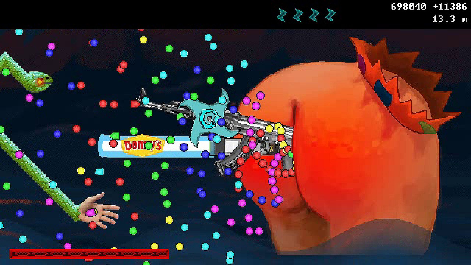 #Snake2 merges unorthodox, technical, soul-crushing bullet hell difficulty with that classic "Snake" tail-growing family fun we all know and love. Careening through the city at high speed, you will need to grow Snake and maneuver his tail-hand into grabbing machine guns and punching helicopters. All this culminates in a tense showdown with Snake's father, the all-powerful Butt King. Combine this with a high-octane, bass-heavy Buttstep soundtrack by Virt (Jake Kaufman) and you get the frenzied, chaotic adrenaline rush fever dream that Snake was always meant to be.