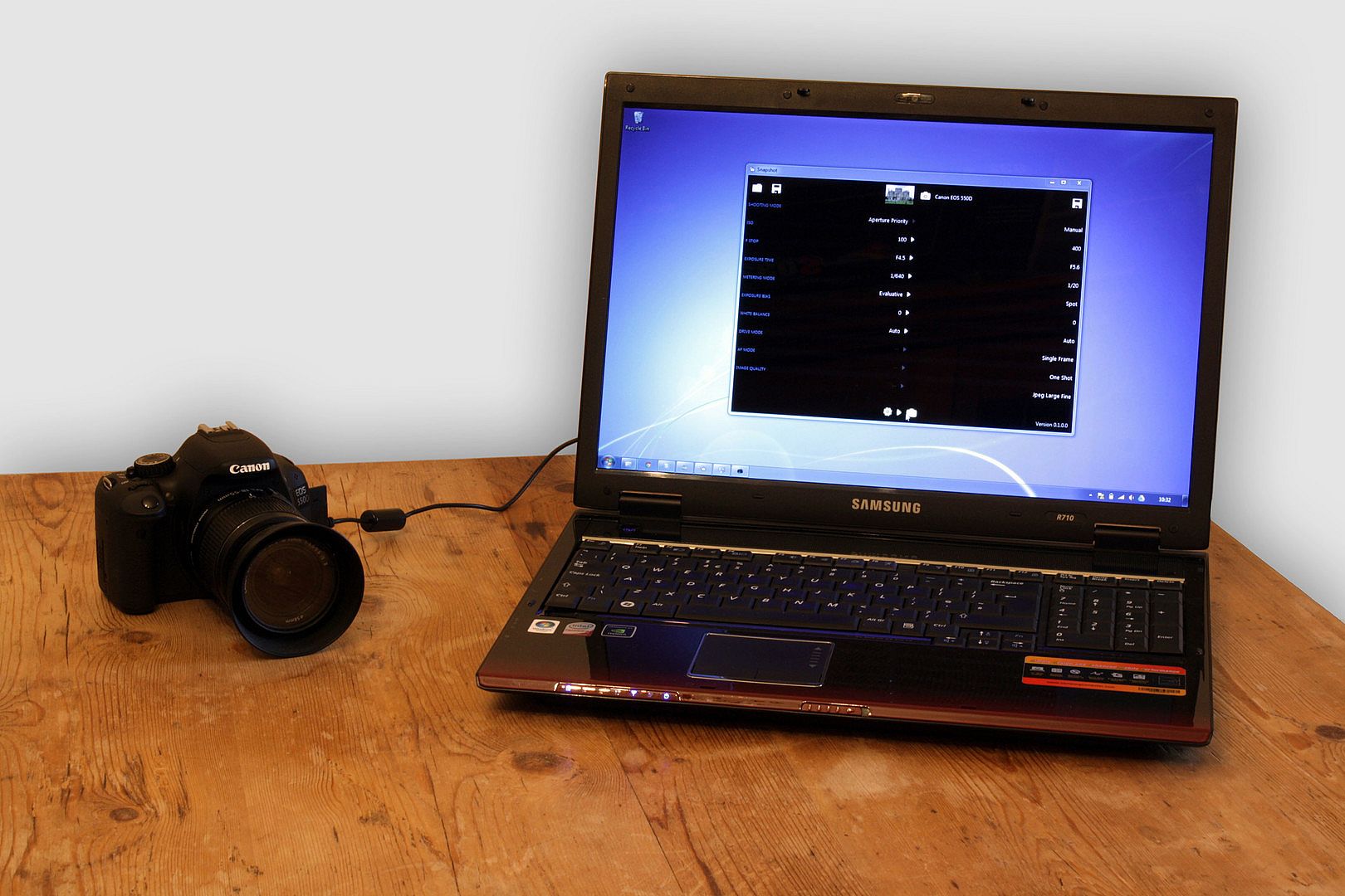 Snapshot requires a Canon digital SLR camera connected to your computer via USB. Once connected, the simple to use Snapshot interface allows you to view and change your camera's current settings using the drop-down boxes.