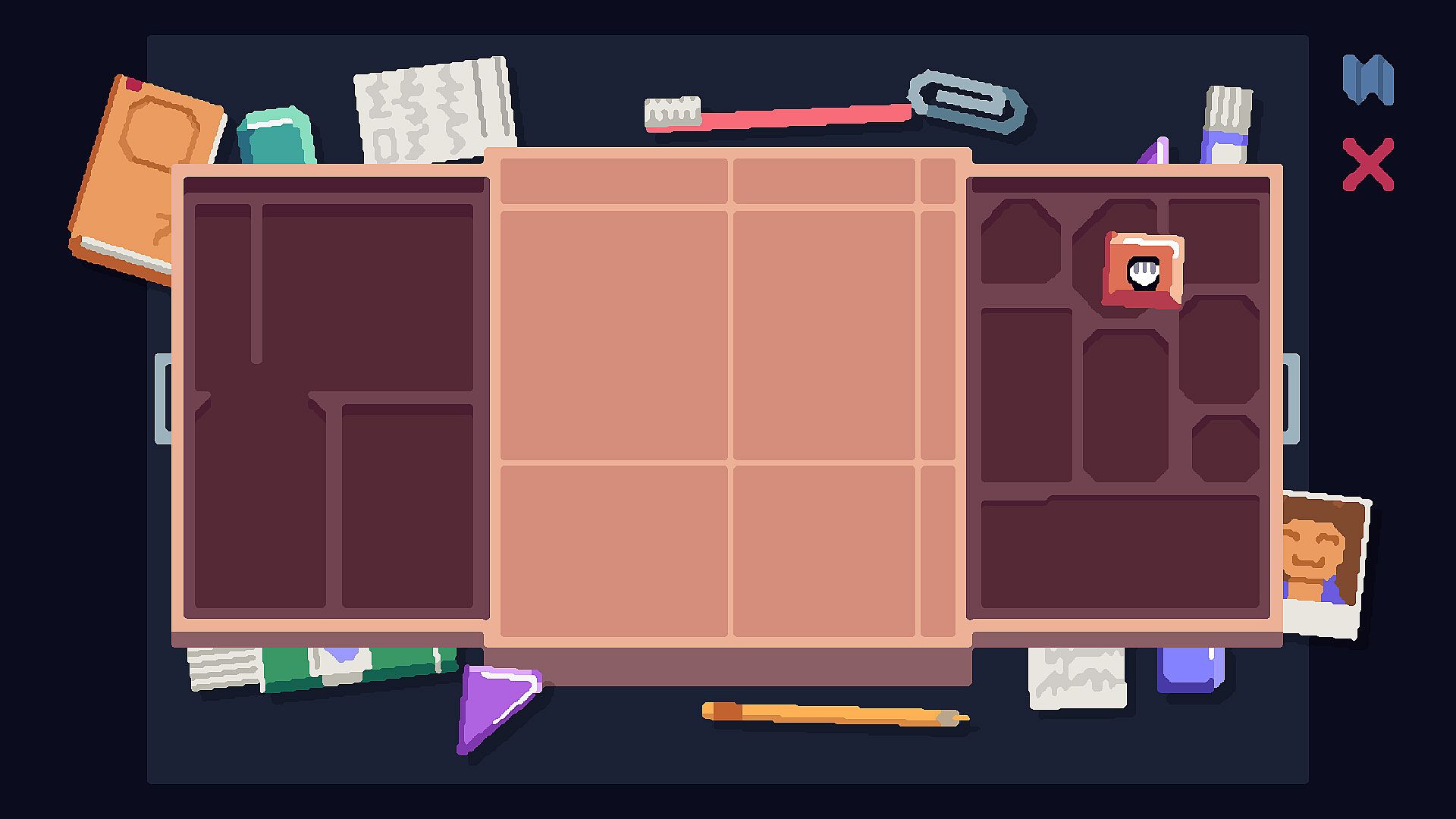 Snapshots is a short game about organizing messy spaces. Place every object back where it belongs, discovering and deciphering secrets hidden amongst the clutter.