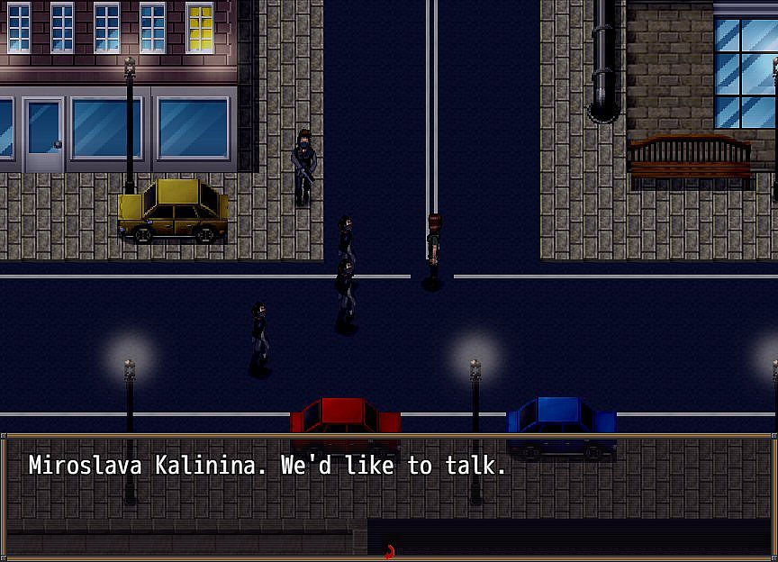 A short, interactive point-and-click story with choices and a mood system, where your actions and words will increase or decrease your character's mood. The mood will affect some of the future dialogues, as well as the endings. Since the story is experienced from 3 alternating characters, when they interact with each other, the mood comes into play, and a low mood of one character can cause negative responses from them, in turn affecting the mood of the one they're talking to.