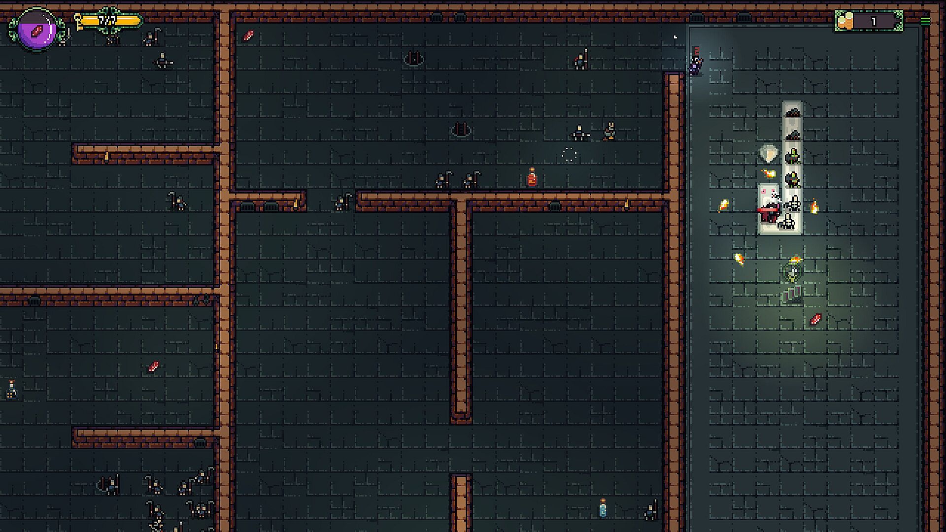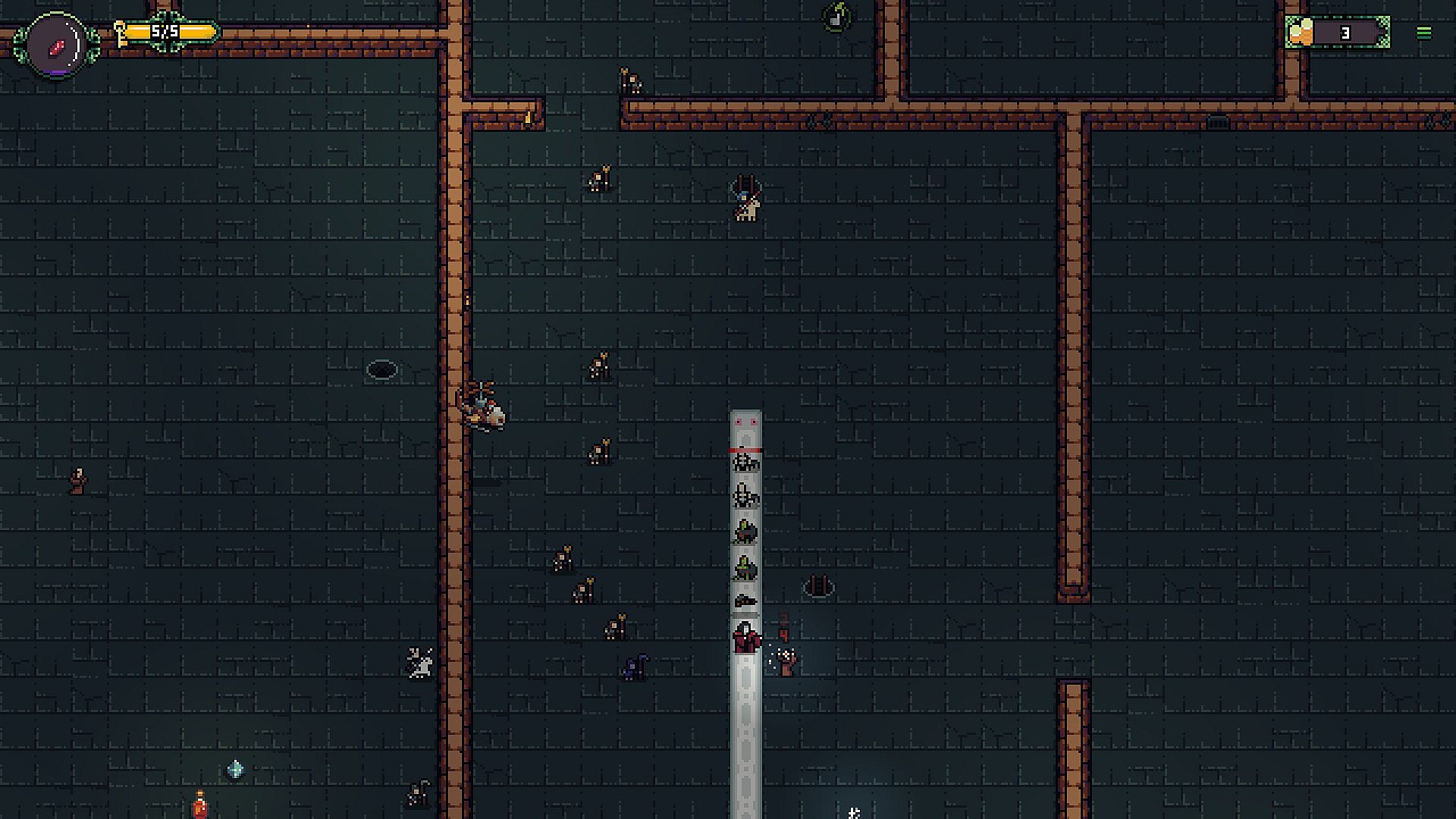 Ladders will spawn throughout the map, and enemy invaders have a chance of entering the dungeon through them. You can kill them by eating them, but you may take damage in doing so, and will not get any rewards. If an enemy is killed by your minions, they will drop gems, potions, or other items.
