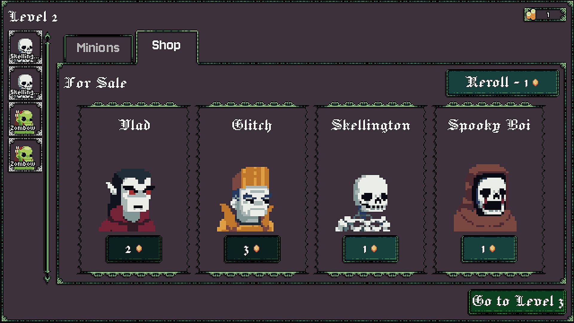 Upgrades can buff your snake (such as health or speed bonuses), summon a minion to ride on your back, or buff existing minions. If you lose a segment and there is not enough room for all of your minions, one will drop on the floor. It will continue shooting from where it stands, and if you return with room for it later you can pick it back up.