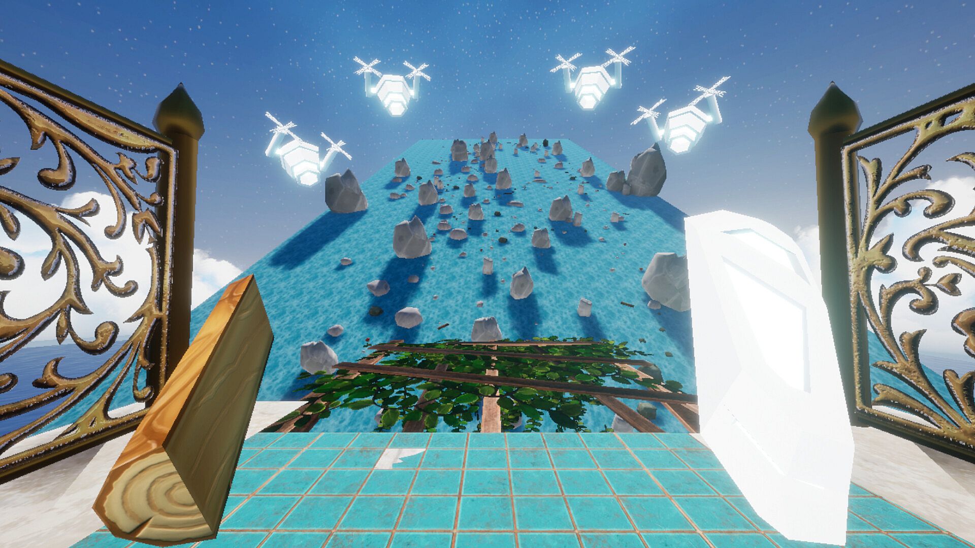 In VR, use a single motion controller to push yourself off surfaces and climb higher.