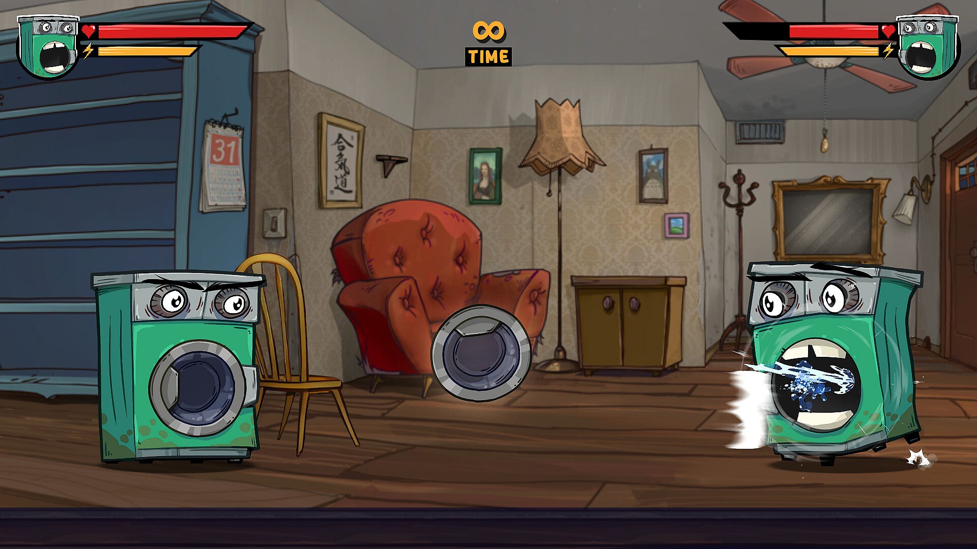 You can utilize basic strikes like kicks and punches in Socket Fighters, as well as five unique special attacks for each appliance. The washing machine, for example, can spit forth a sock, the television can fire a rainbow, the toaster can spew toast, and so on.