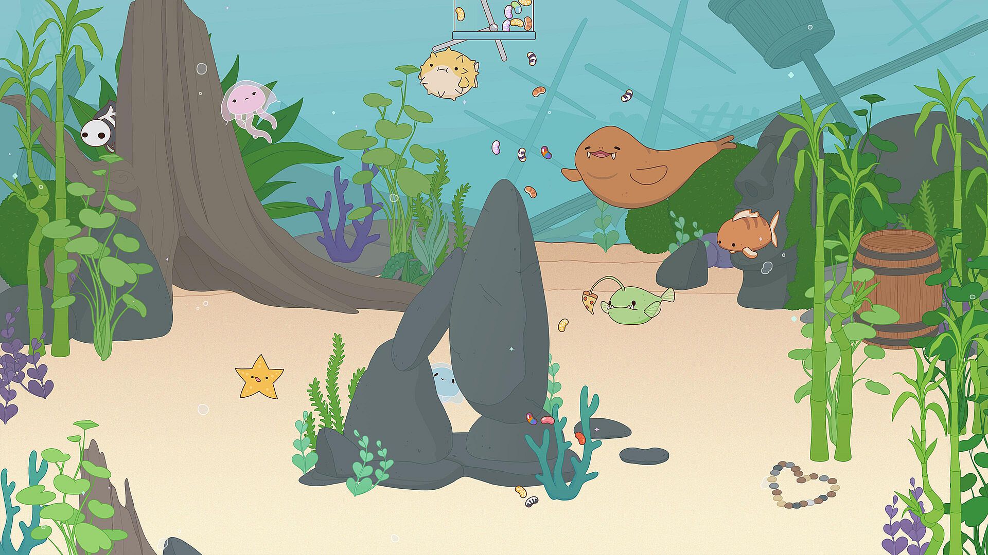 Create your own little corner of the ocean with a variety of furniture pieces. You can stack things, create blueprints, and change backgrounds.