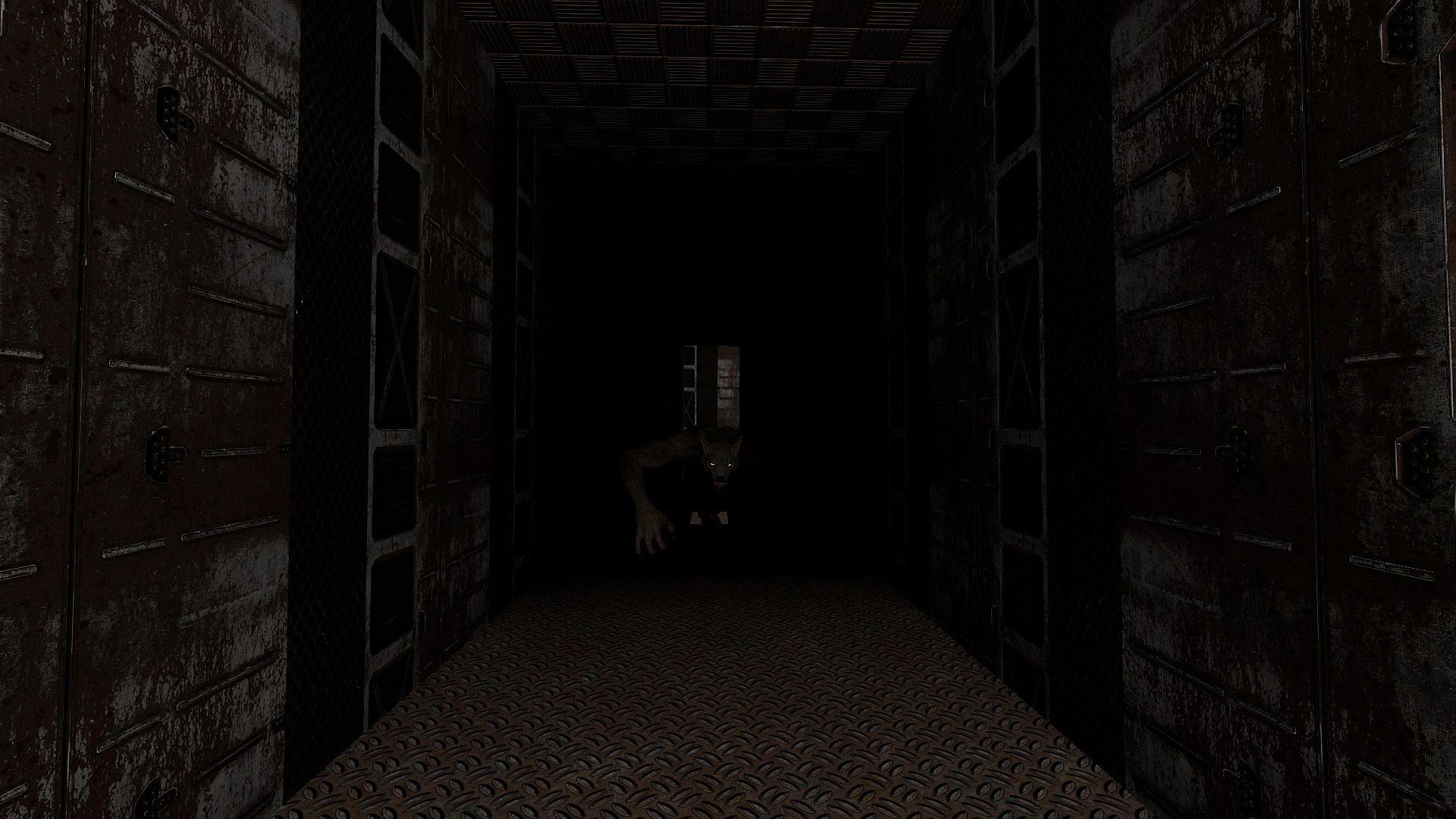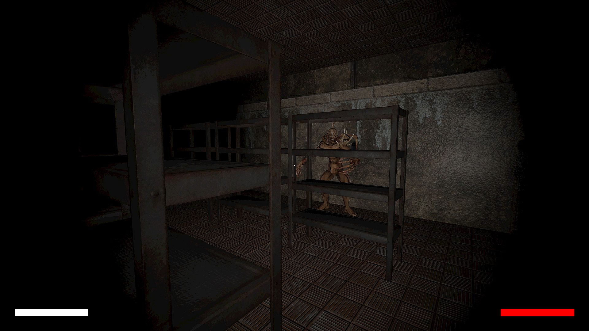 You wake up in a crappy and very strange place, like an old factory or warehouse. You are locked in one of the rooms. You don't know how you got in here and what to do next. Suddenly, an unfamiliar and arrogant voice from the loudspeaker orders to obey him and follow the rules in order to survive and get out of here. Everywhere around is semidarkness, confusion, and loud clinking sounds are emitted. The locals know you're here. Death is inevitable if inactive, but outside the room is also dangerous. There is only one option, to move unnoticed and avoid encounters with monsters, because health is limited.