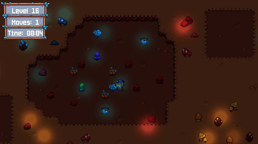 Bear’s job takes him to a massive cave, with 40 rooms. Inside the mine, he will find precious gems next to cheap crystals and some easily breakable rocks. To complete his task, solve the enigma on how to move the gems to their proper place!