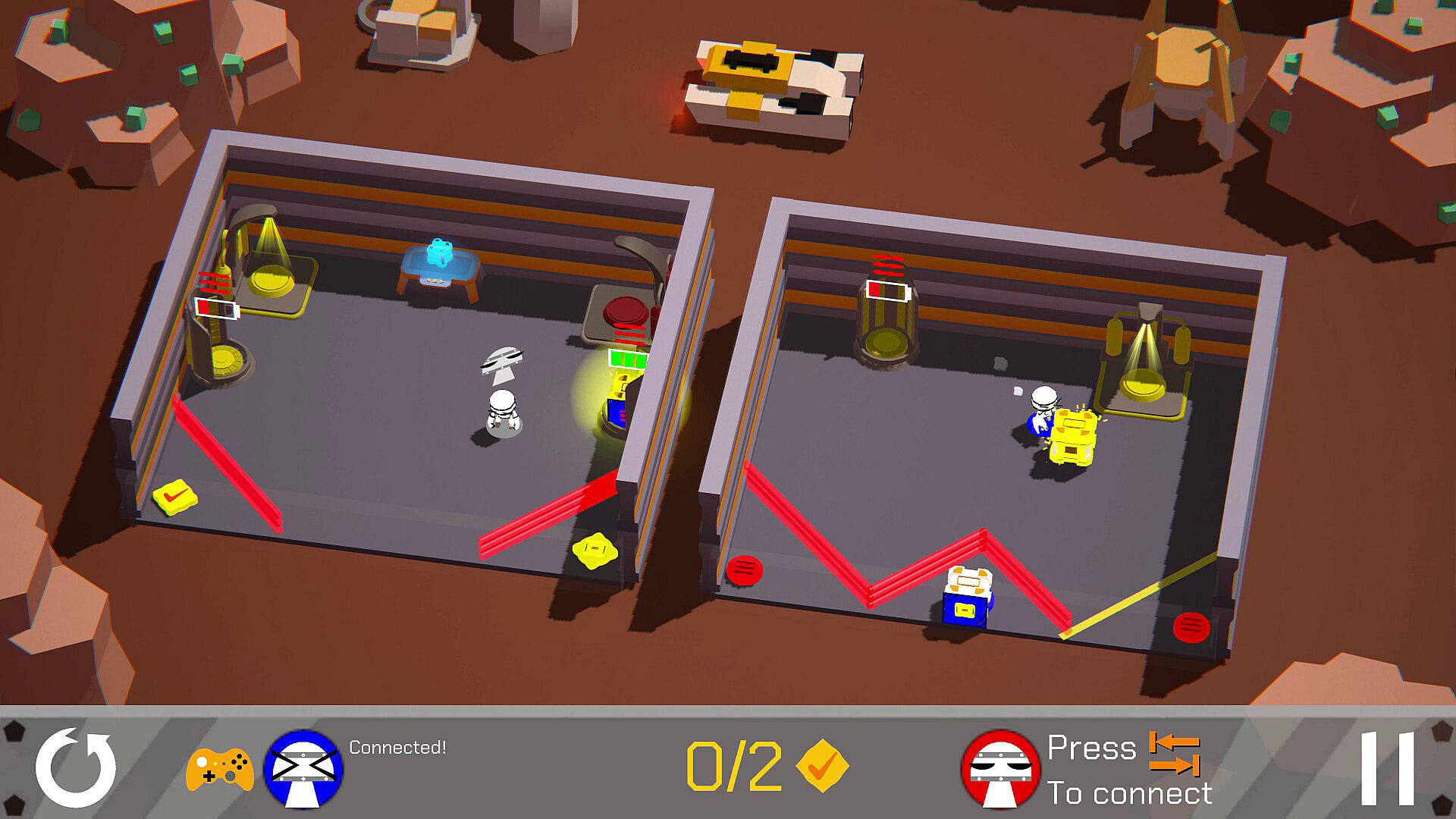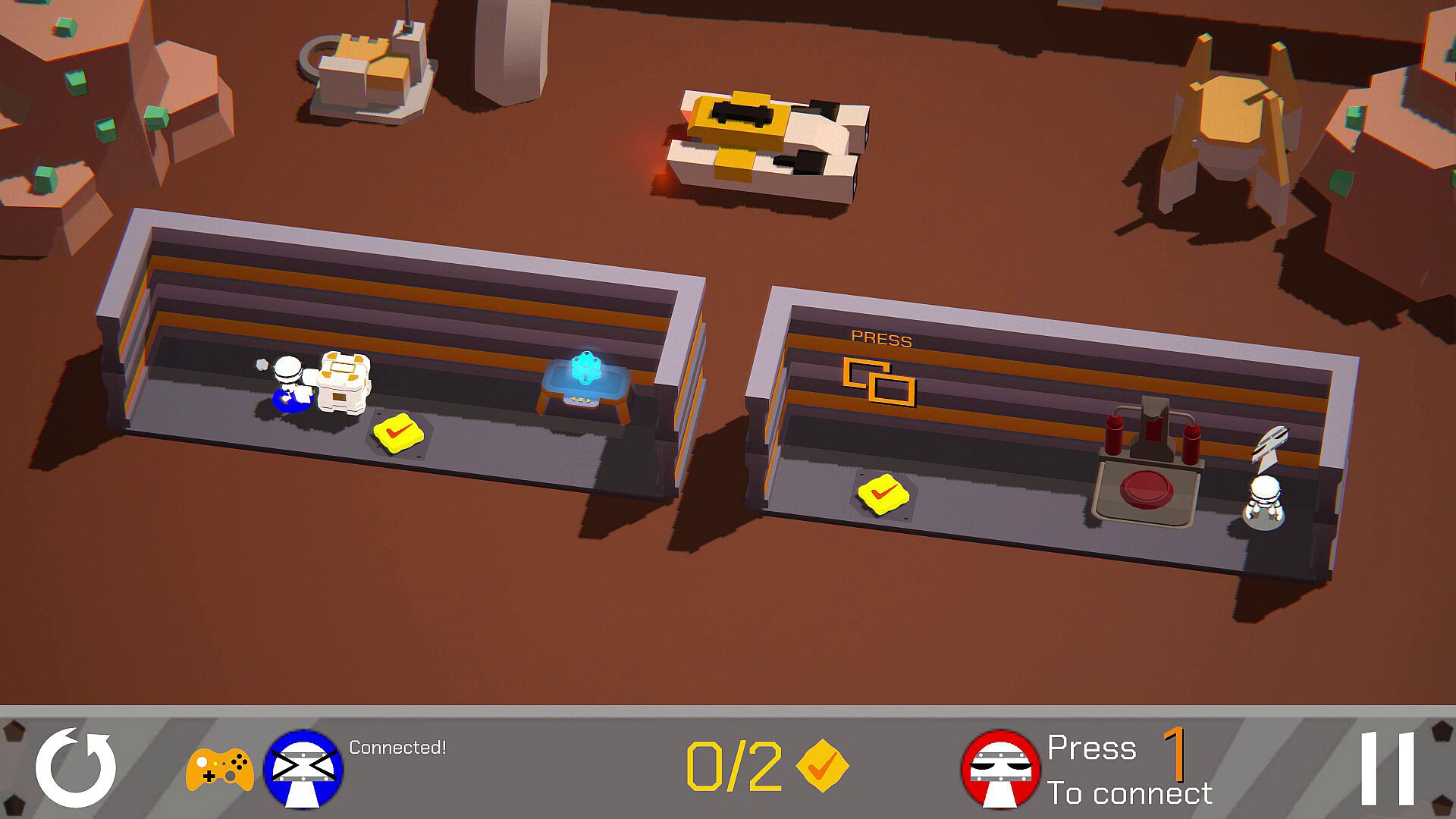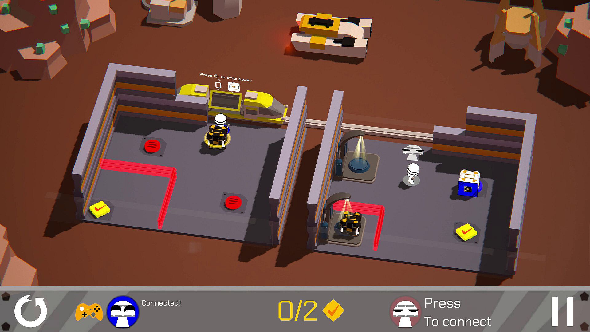 Play cooperative sokoban puzzles with goofy robots in SokobotS. Team up solo or with others to control robots featuring unique abilities. Push blocks and trigger interactions across rooms to aid each other in solving challenges. Uncover Chococorp's scheme in a future dominated by a chocolate cereal lobby racing to mine sugary asteroids near Earth. Navigate this quirky tale while mastering robot teamwork. Indie fans who enjoy puzzle-solving with cooperative twists and lighthearted robot antics will find a perfect fit.
