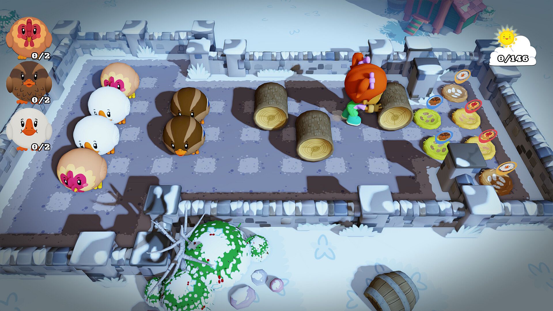 Rolling each lost bird to its correct type of nest completes the day, but watch out, the Rooster will be watching your every move, take too many and he may fail you! Luckily, he lets you in on a little secret early into your SokoFarming career allowing you to undo moves to correct your mistakes!