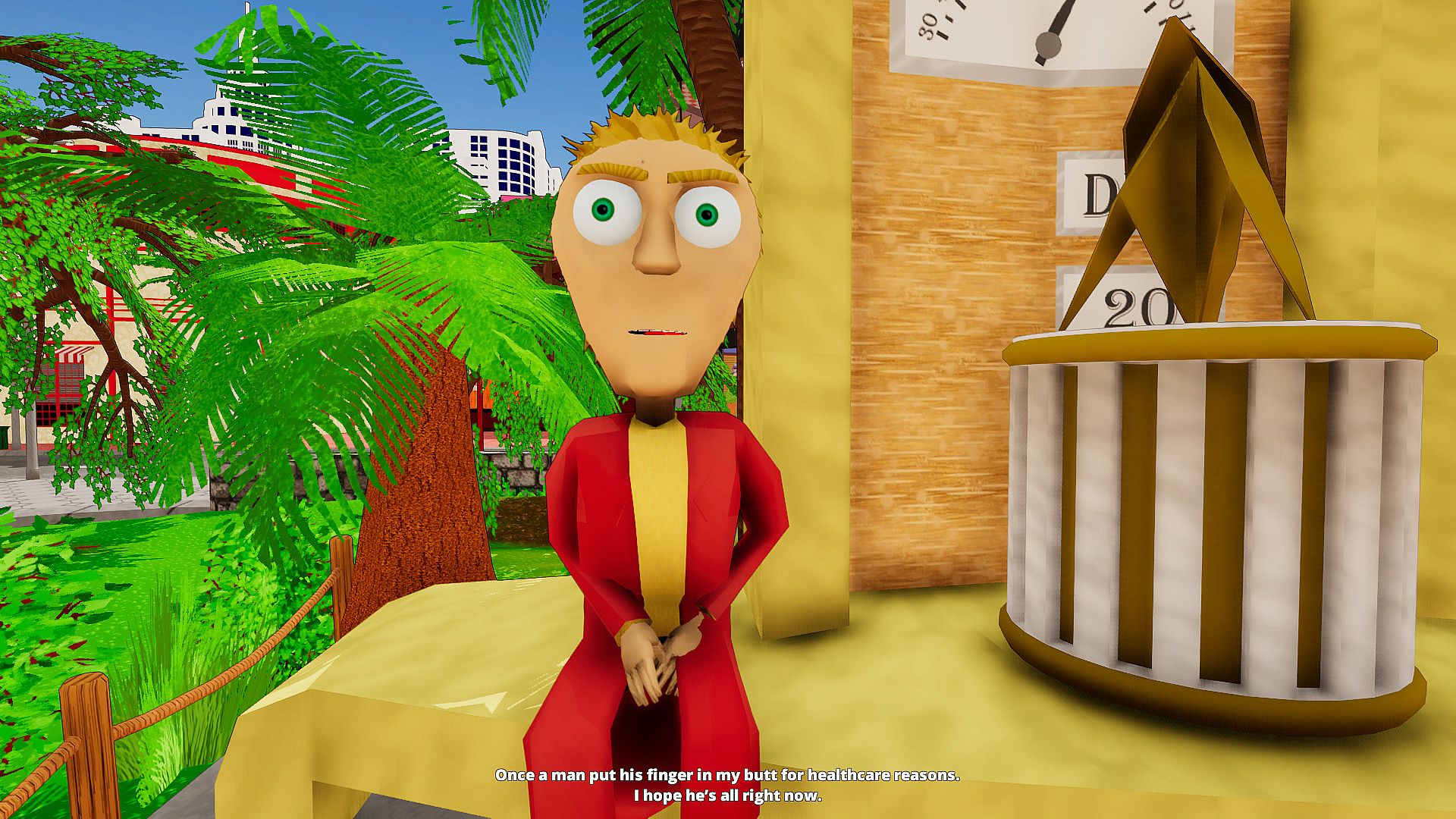 Solar Panic is a first-person comedy adventure game. Wake up as Durwood Champney, a sarcastic douche with a vendetta for early morning traffic and follow a true story that we made up. Explore exotic places filled with funny and/or stupid encounters and experience the story of a hungover ex-secret agent. A bit like James Bond without all the coolness and classiness.