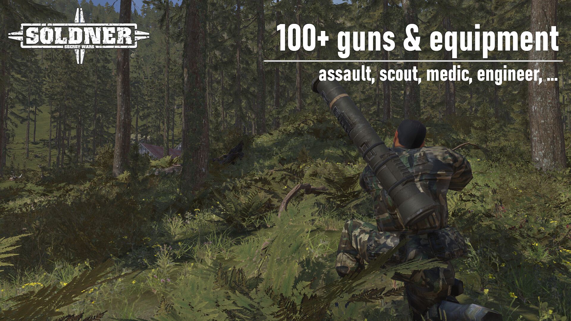 Söldner offers a wide range of different weapon choices. This is called the Soldier Weapon System (SWS). Choose your loadout from a selection of more than 100 highly realistic modelled weapons, ranging from pistols to various rifles to grenade launchers and multiple-rocket launcher. Make yourself a scout, medic, engineer or support your troops with a laser designator. Enjoy the absence of predefined player classes and be fully in charge of your favourite kit and adapt quickly to any situation on the battlefield!