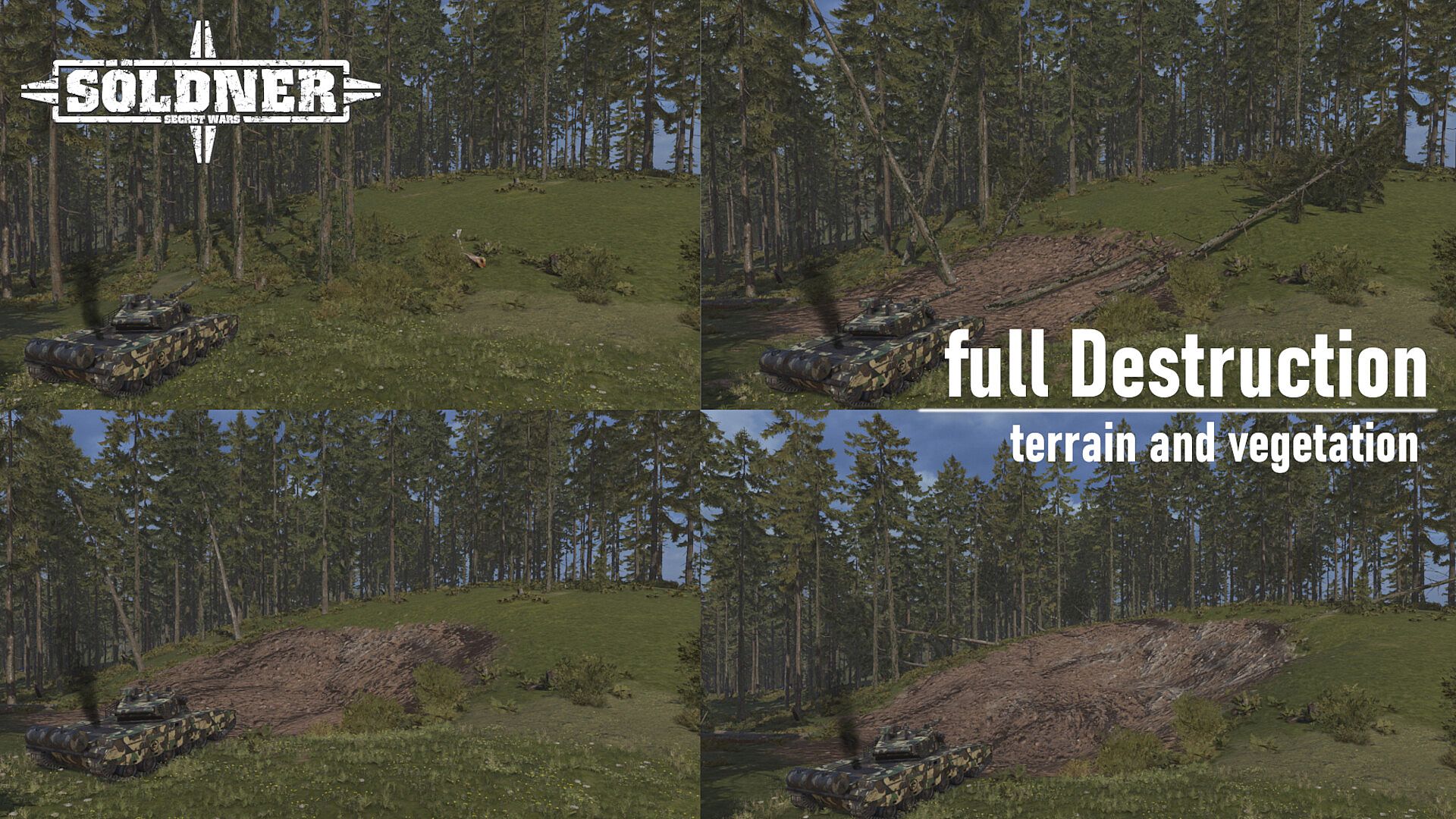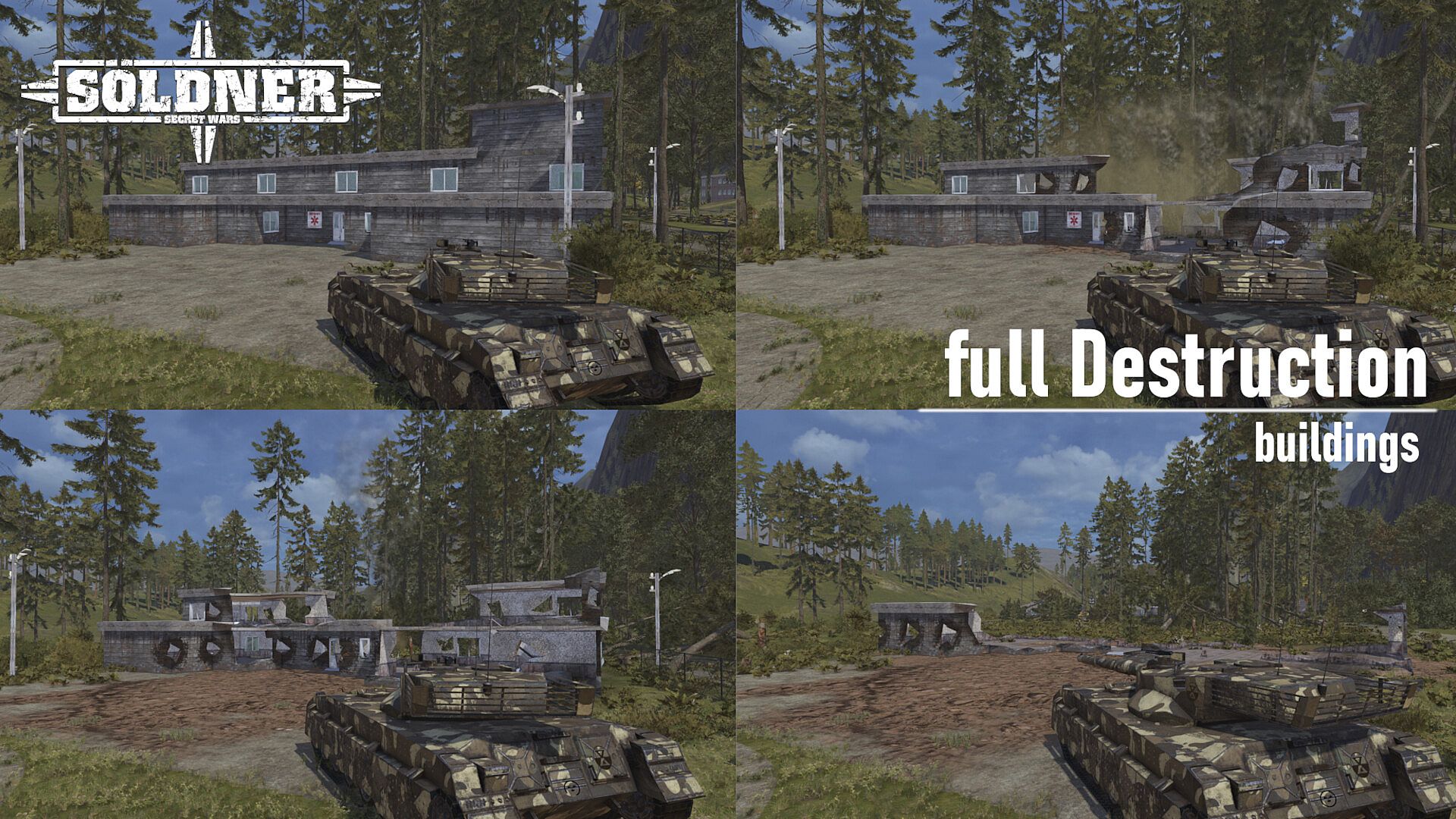Tear down walls or smash complete houses. The possibilities are endless! With the Advanced Destruction System (ADS) you can deploy an endless combination of true to life tactics. Mow down complete forests in order to smoke out enemy positions. Turn the enemy base into rubble and devastate their morale. Keep your opposition on the run, denying them places to hide and rest, thus creating new ones in the process. With the Advanced Destruction System, the only limit is your fantasy! – or, well Ammo that is.