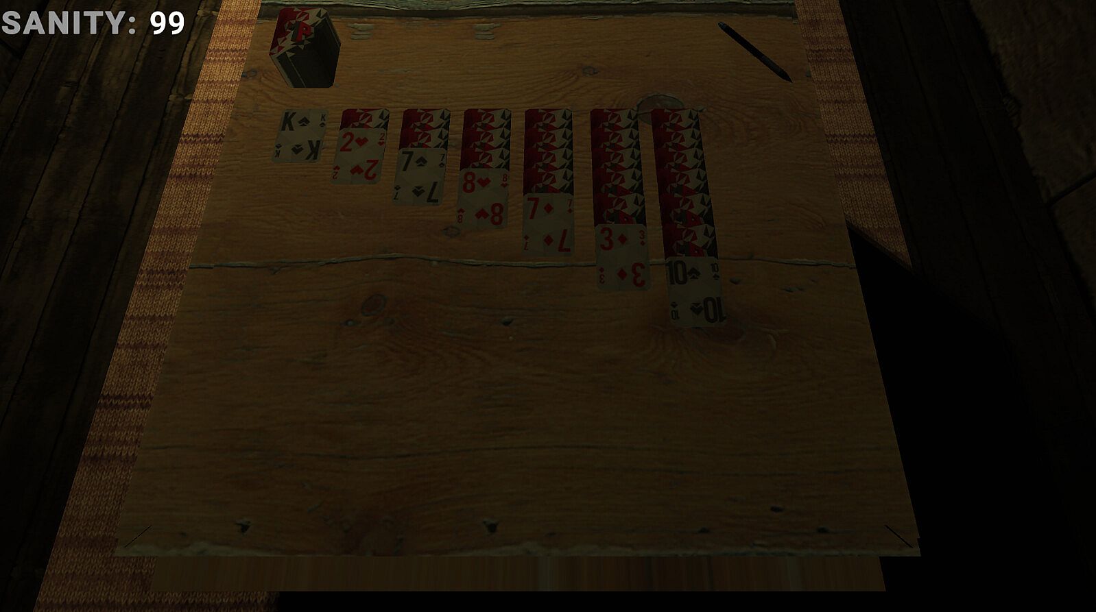 A game where you play Solitaire before your sanity runs out, and avoid the demon that lurks.