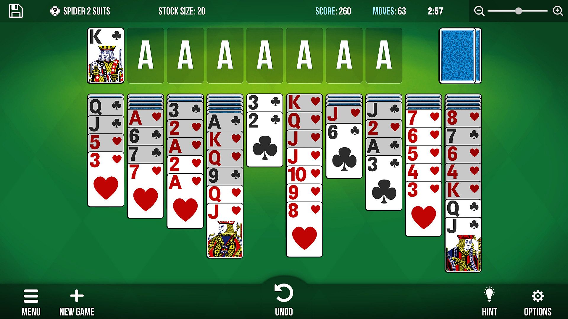 Spider Solitaire – The most popular category on the web version, now with more than 15 variants such as Spider 1, 2 and 4 suits, Beetle, Scorpion and Wasp.