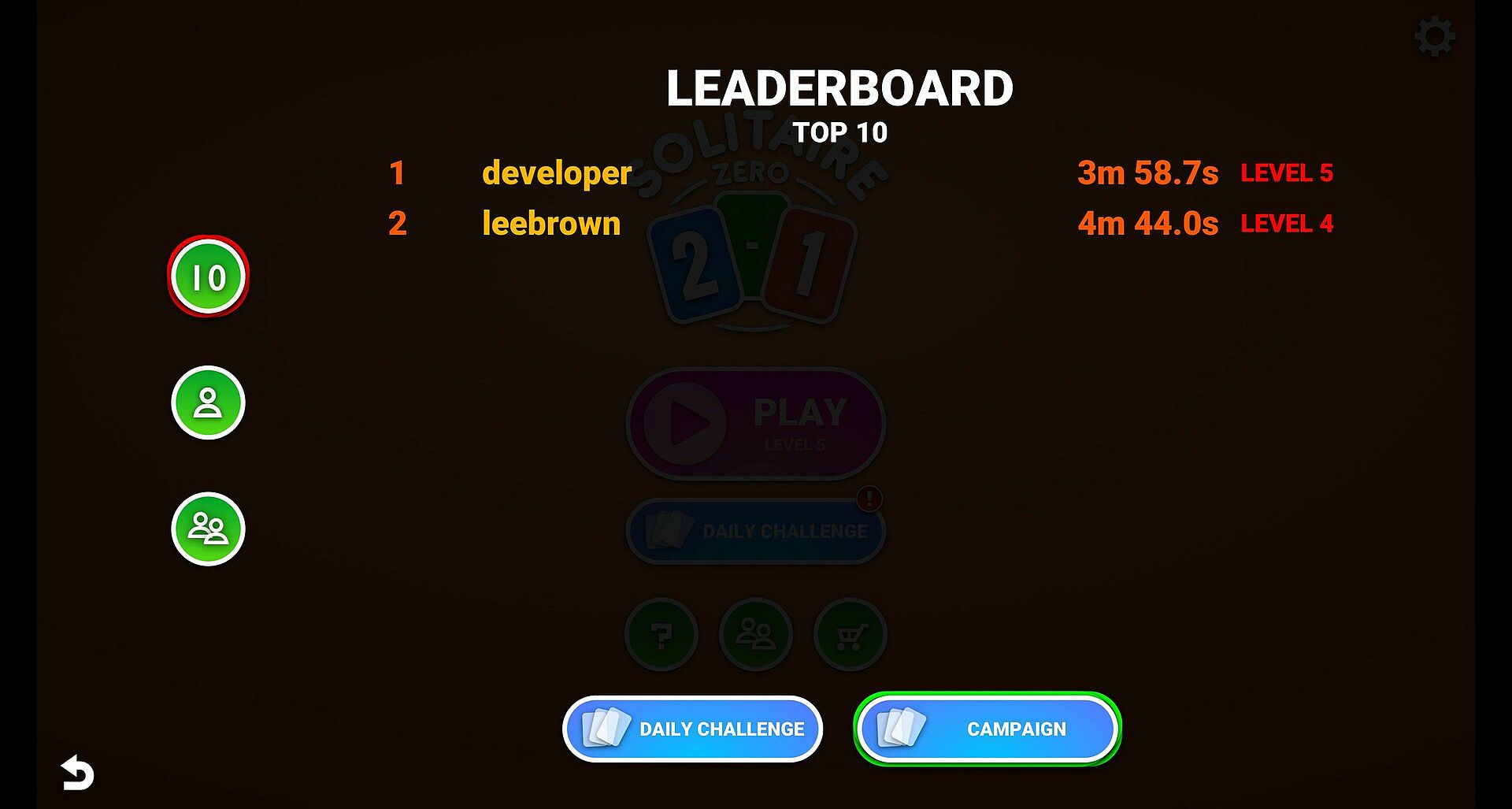 The game also includes leaderboards to allow players to rank amongst their friends and the world. Leaderboards are progression and time based.