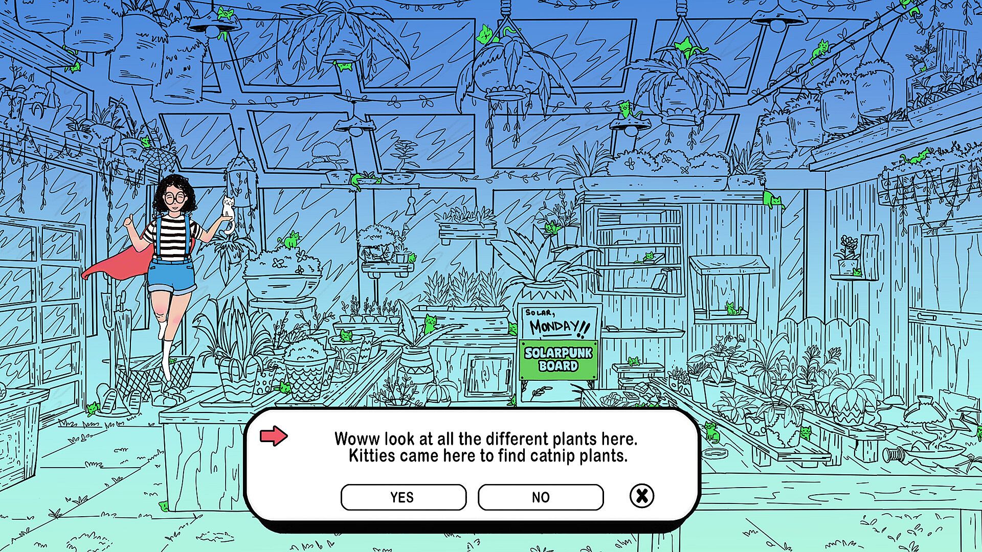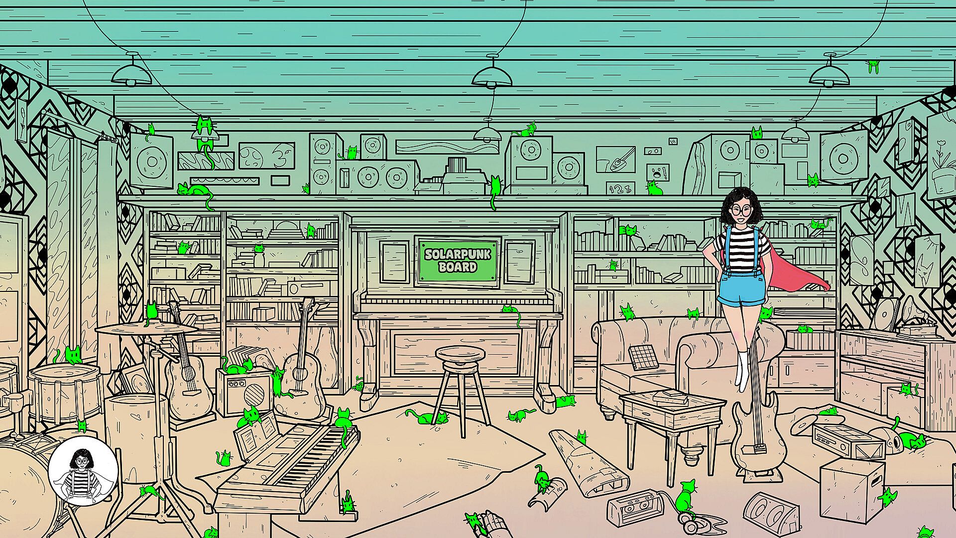 Welcome to Solnest, a cozy hidden object game where you explore beautiful solarpunk-inspired rooms and uncover over 500 adorable cats hiding in plain sight!