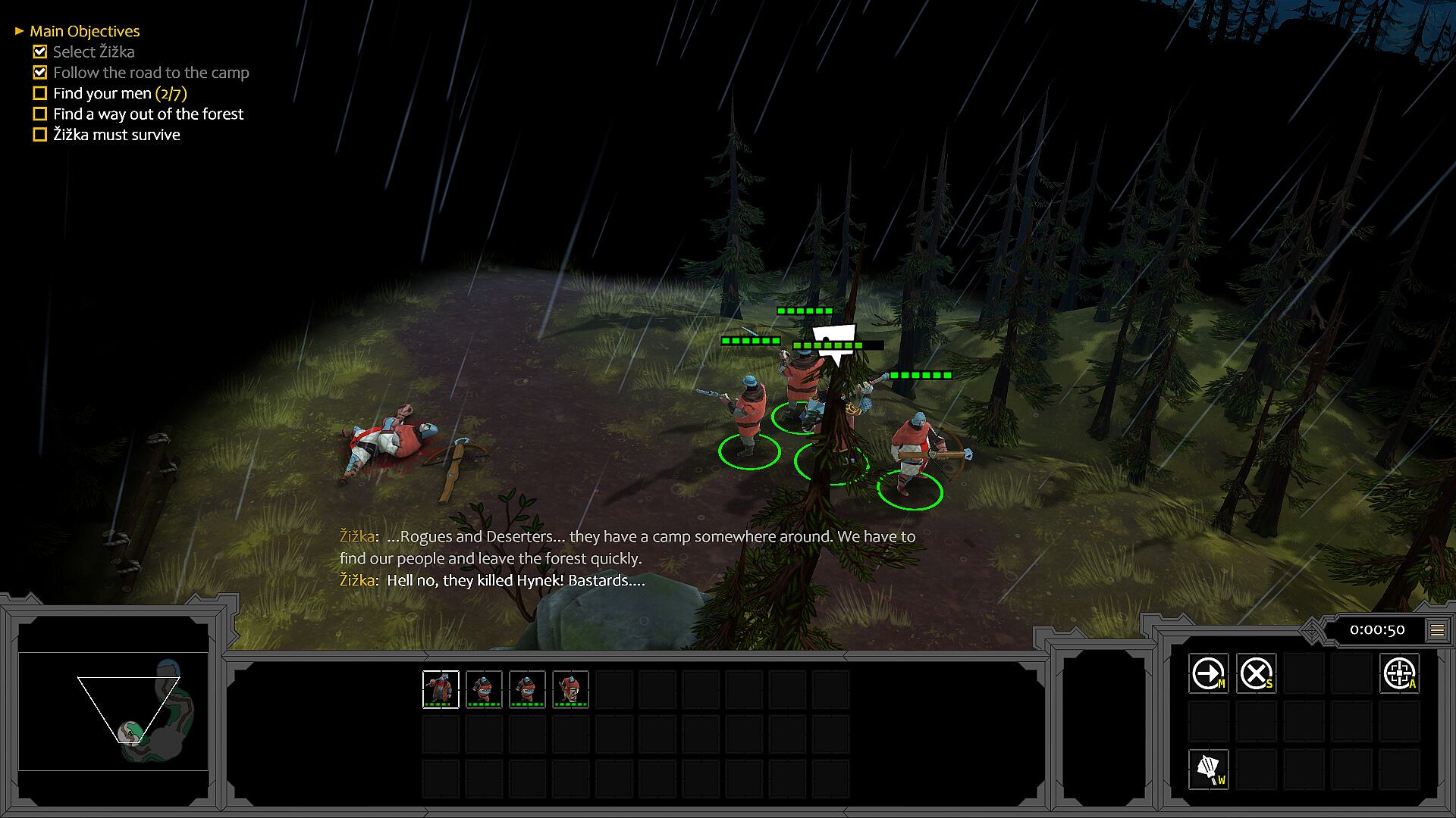 In the first days of his stay, alongside his group and the local Hussites, he participates in the expulsion of part of the Catholic population and undertakes raids against enemy bases in the vicinity. During one of these raids near Nekmíř, he encounters infantry fof the Pilsen Landfrieden, led by Bohuslav from Schwamberg...