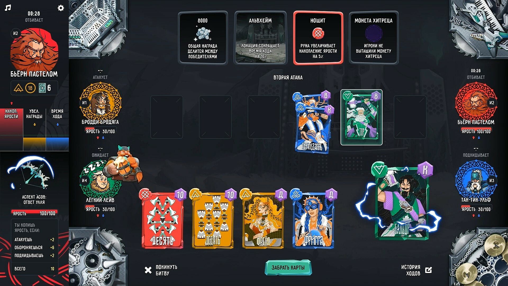 Fight for — and against! Embark on a campaign inspired by Norse sagas, but with a playful twist on mythic archetypes as you journey across the Nine Worlds! And when you’re done liberating Asgard — conquer it instead in PvP battles of every kind: from tense duels to chaotic four-player clashes! Let the cards fly instead of axes!