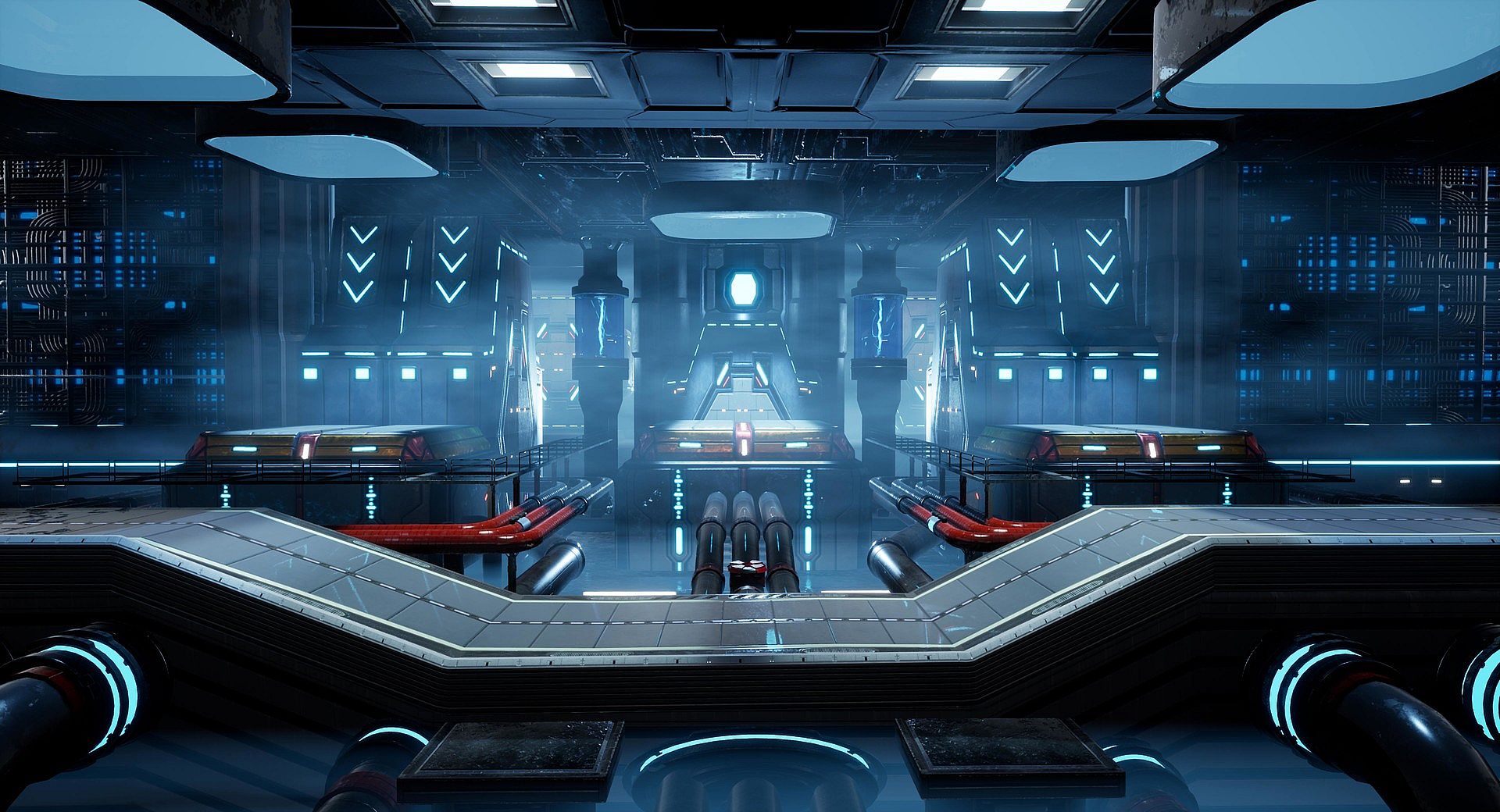 • Travel and backtrack across the vast V.I.R.U.S. Compound divided in over a dozen beautiful sci-fi modern areas that reflects the function of each biome.