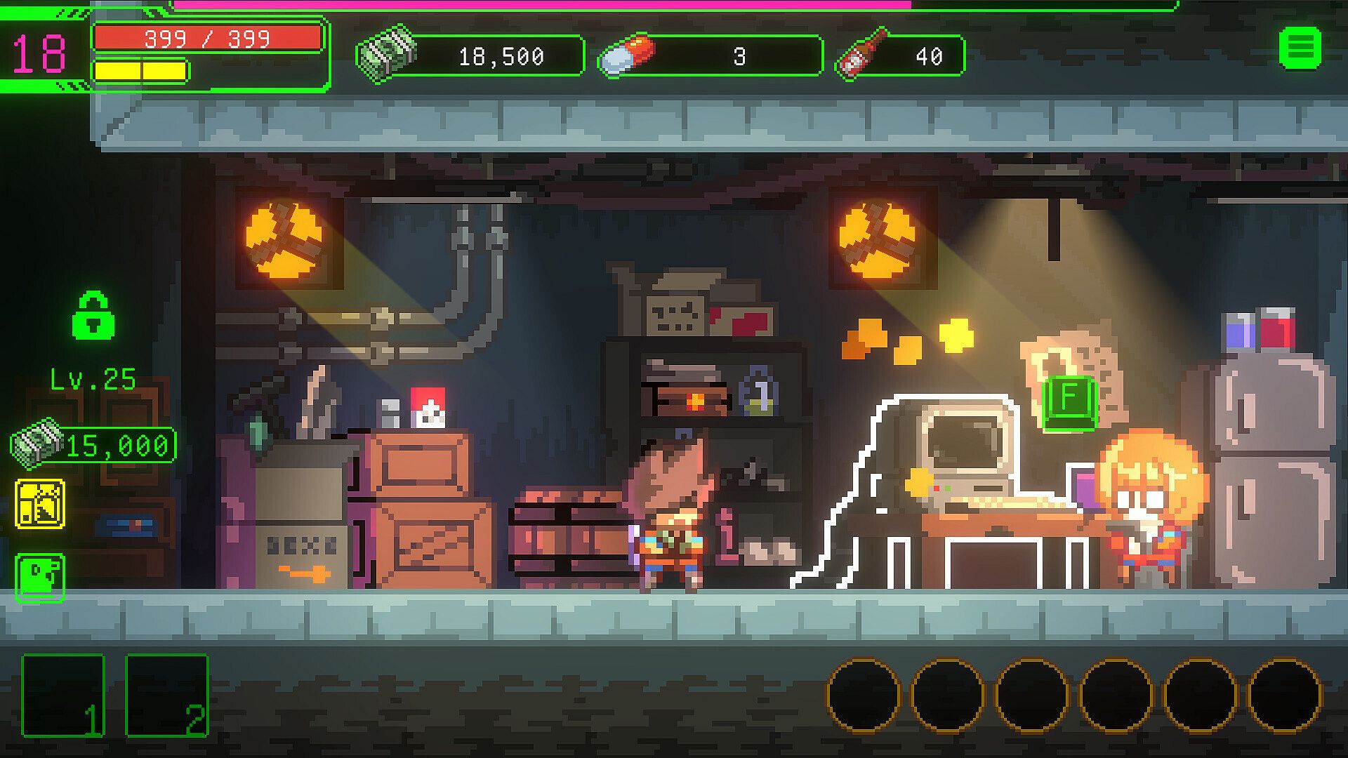 • A modern take on classic 2D pixel-art action. Crisp animation, expressive characters, stylish effects, and a retro aesthetic refined for today’s players.