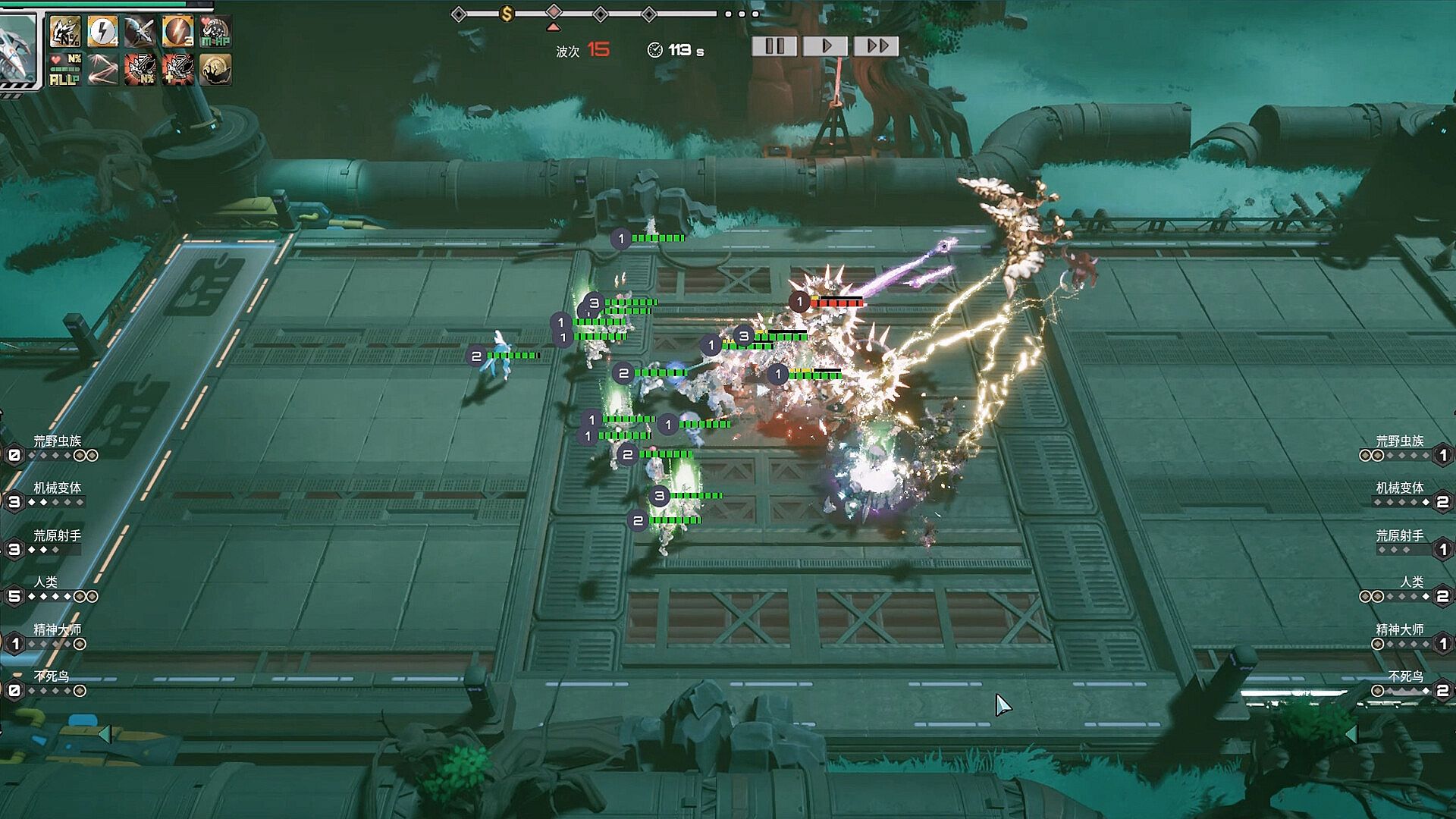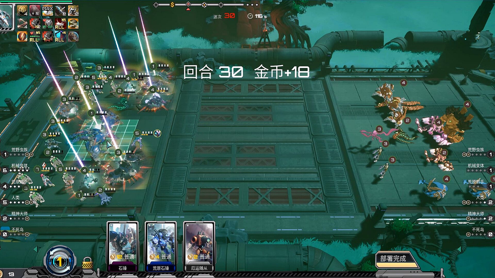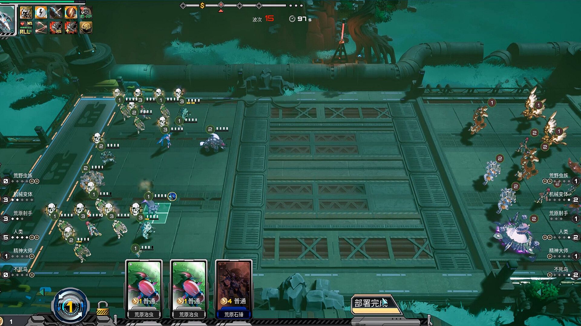Wasteland Swarm: An endless tide of insects sweeps across the battlefield.Wasteland Marksmen: A rain of arrows secures victory from afar.Mechanical Shifters: An impenetrable iron wall that reflects all damage.Humanity: Lightning splits the battlefield, deciding the fight with a single strike.Psionic Masters: Psionic barrages strike multiple targets at once.Phoenix Wardens: Freeze all things and snuff out all life force.