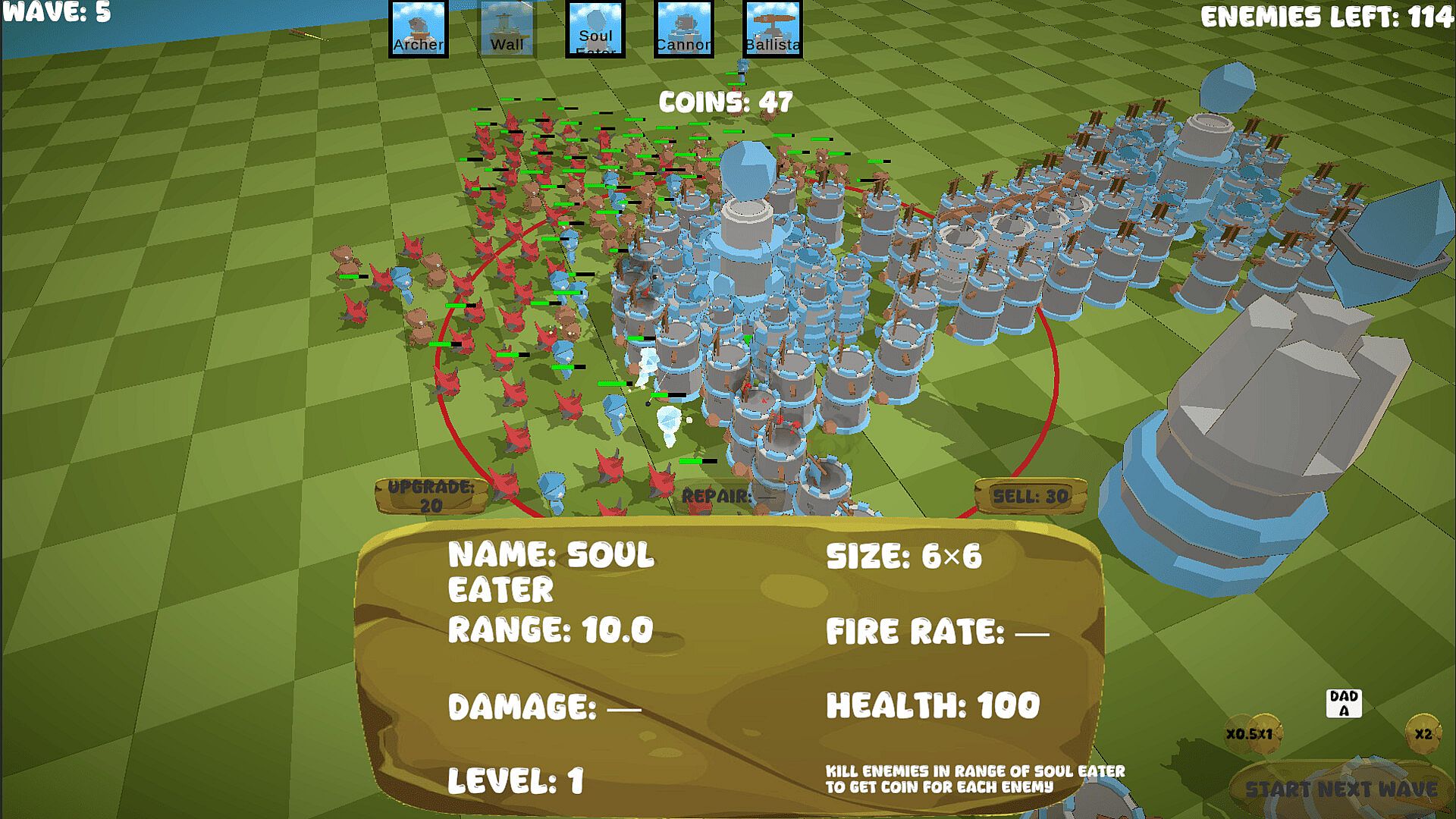 Soul Siege--build and design your defense tactics against huge waves of Souls. after every few waves choose from randomized cards to boost your strength. survive as many waves and complete challenges to earn points to unlock powerful enhancements to become stronger for the next run.