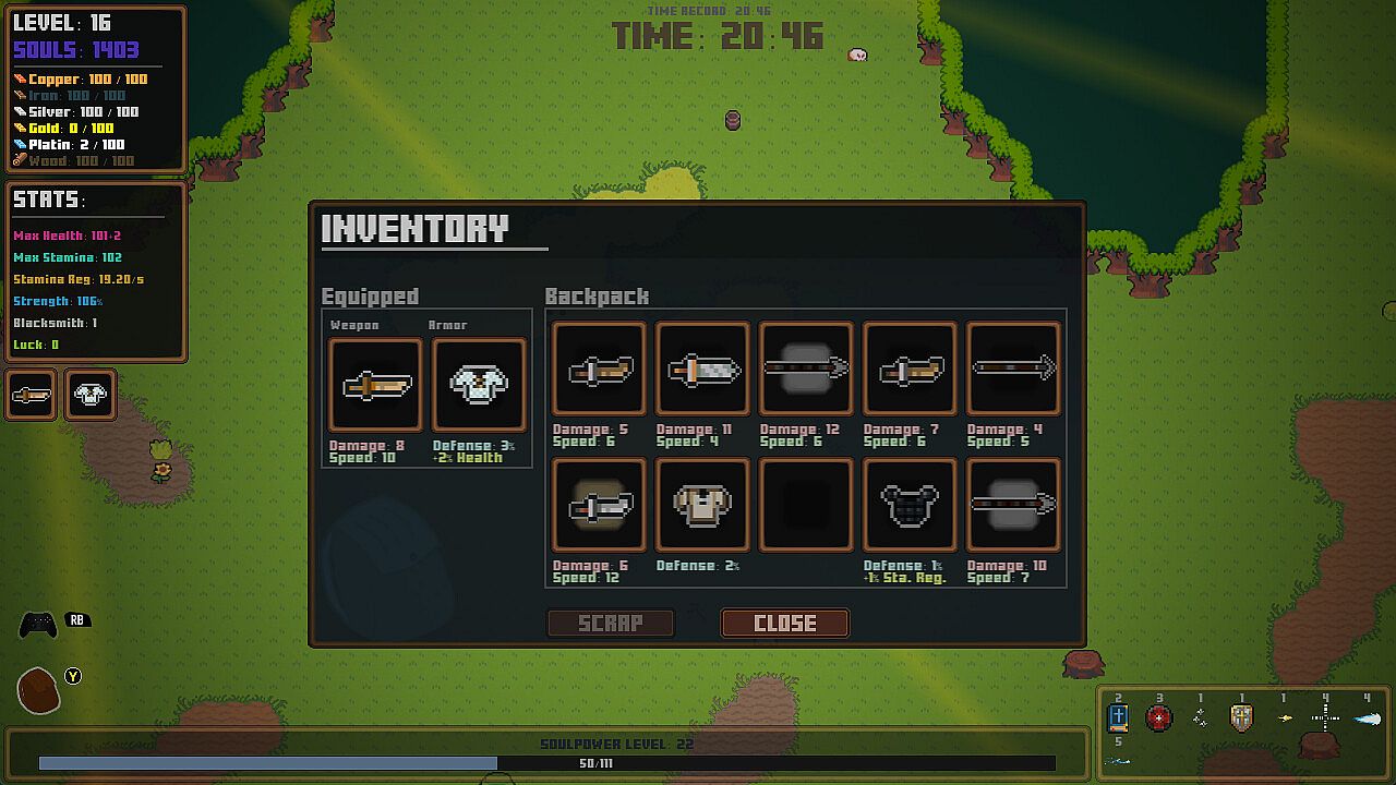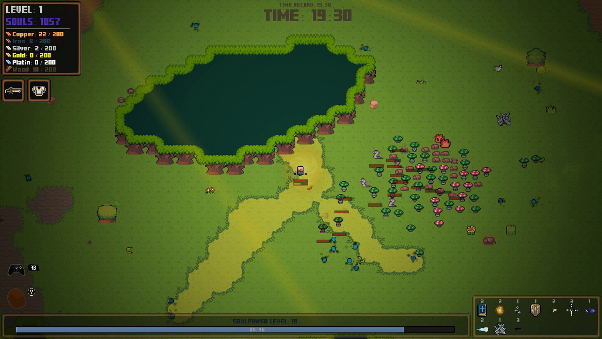 Fight hordes of enemies in Soulknight Survivor to harvest their souls and unleash devastating soulpower attacks. Survive 30 minutes across five challenging maps, each with four difficulty levels, while aiming weapons freely with mouse or gamepad. Manage stamina during swings and dodges, level up strength, health, stamina, and regeneration using souls, and loot procedurally generated chests for weapons and armor. Gather resources by mining stones and felling trees, then craft superior gear at the forge to boost your blacksmith skill. Upgrade your hometown for better storage and forge improvements. This action survival game with directional combat, skill systems, and crafting draws in players who enjoy intense resource management and progression challenges.
