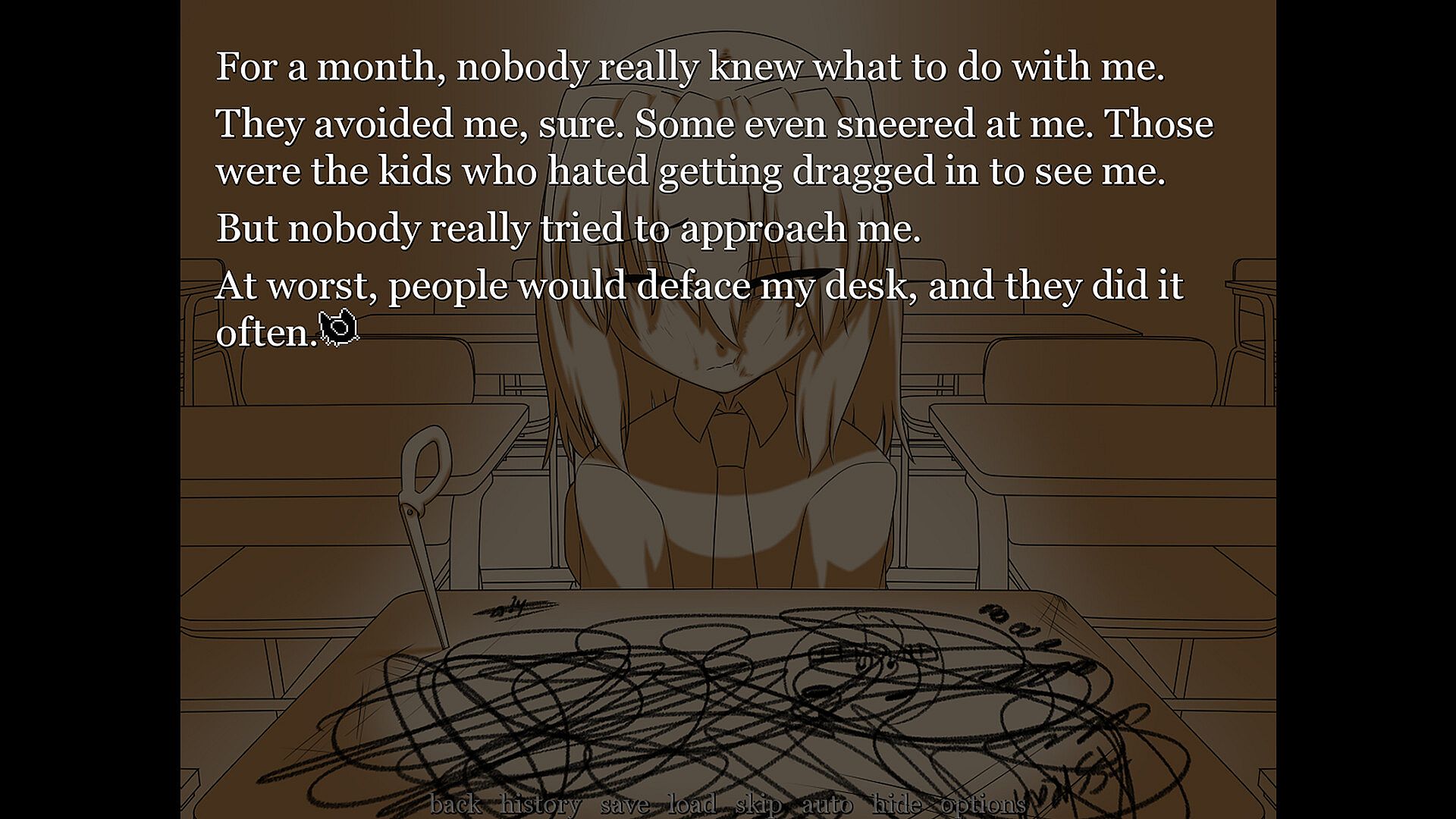 • A retro interface and style of presentation, harking back to 2000s-era Japanese visual novels