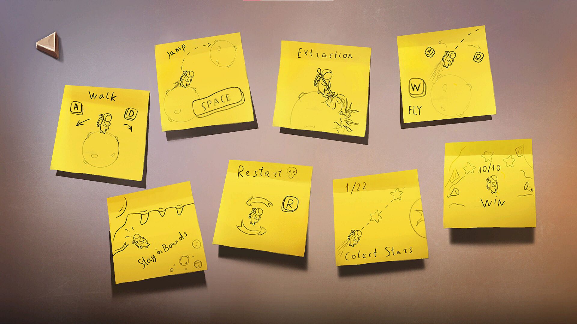 To move around, the astronaut uses a jetpack that allows him to fly and maneuver between asteroids. But there's a catch — energy is limited. Overuse will leave you drifting helplessly in space. To recharge, you’ll need to extract energy from asteroids, making route planning a key part of survival.