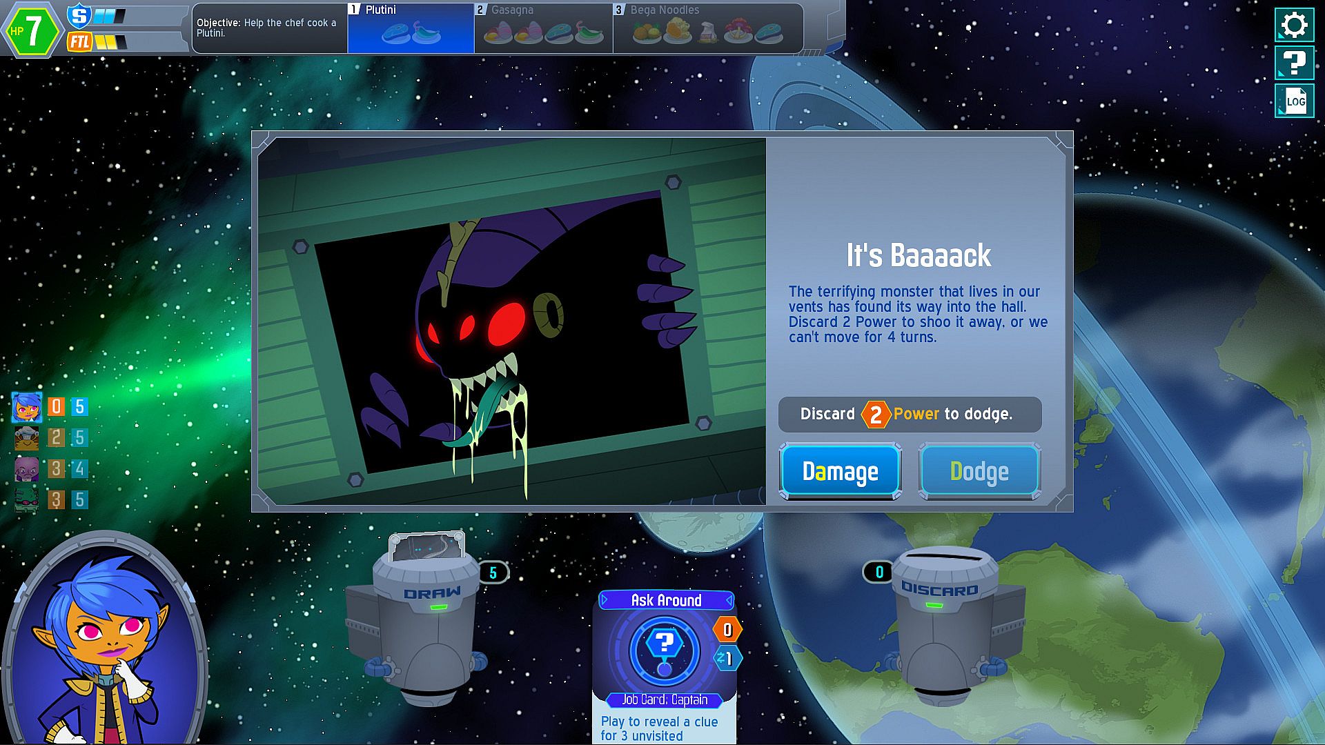 • The Captain plots your ship's course, scouring the galaxy for stronger items and tastier ingredients.