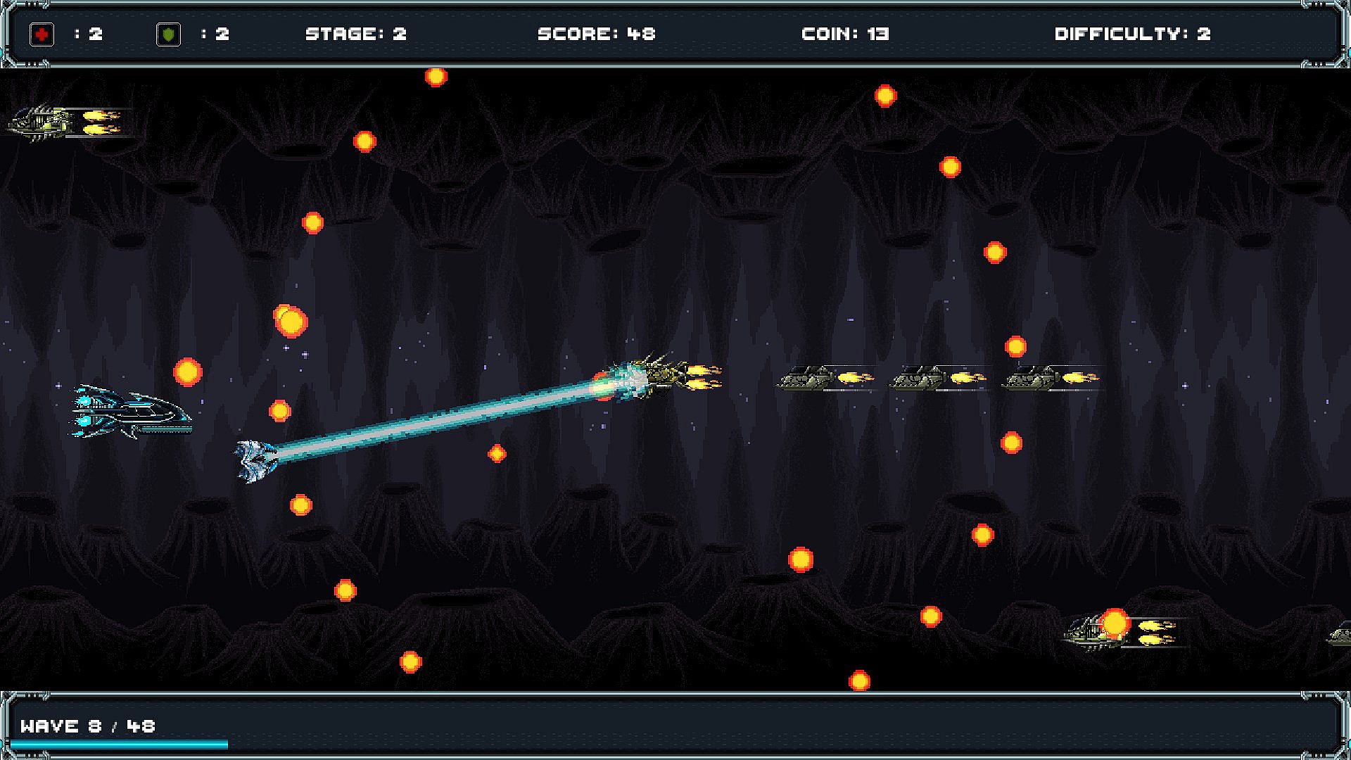 A classic space shooter reborn! Pilot your ship on an epic journey through the cosmos, facing hordes of space pirates across 13 intense levels. Defeat enemies to collect upgrade orbs and spend them in the shop to evolve your ship with more damage, extra life, and insane speed. Face colossal bosses in battles that demand strategy and razor-sharp reflexes. Every victory brings you closer to interstellar glory! - 13 challenging levels - Persistent upgrade system - Epic bosses - Precise controls and nonstop action Get ready for the final frontier. Space has never been so dangerous... or so addictive! 🚀