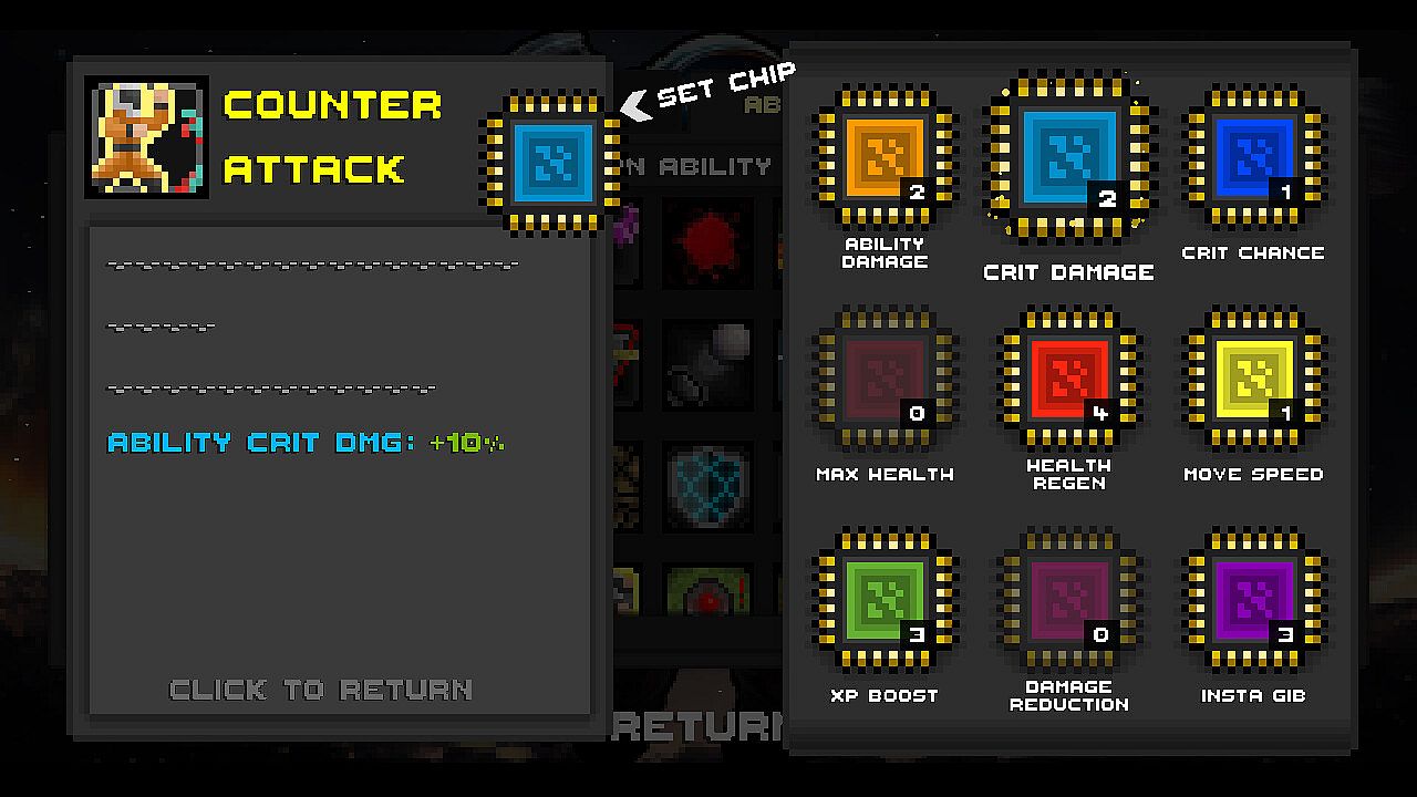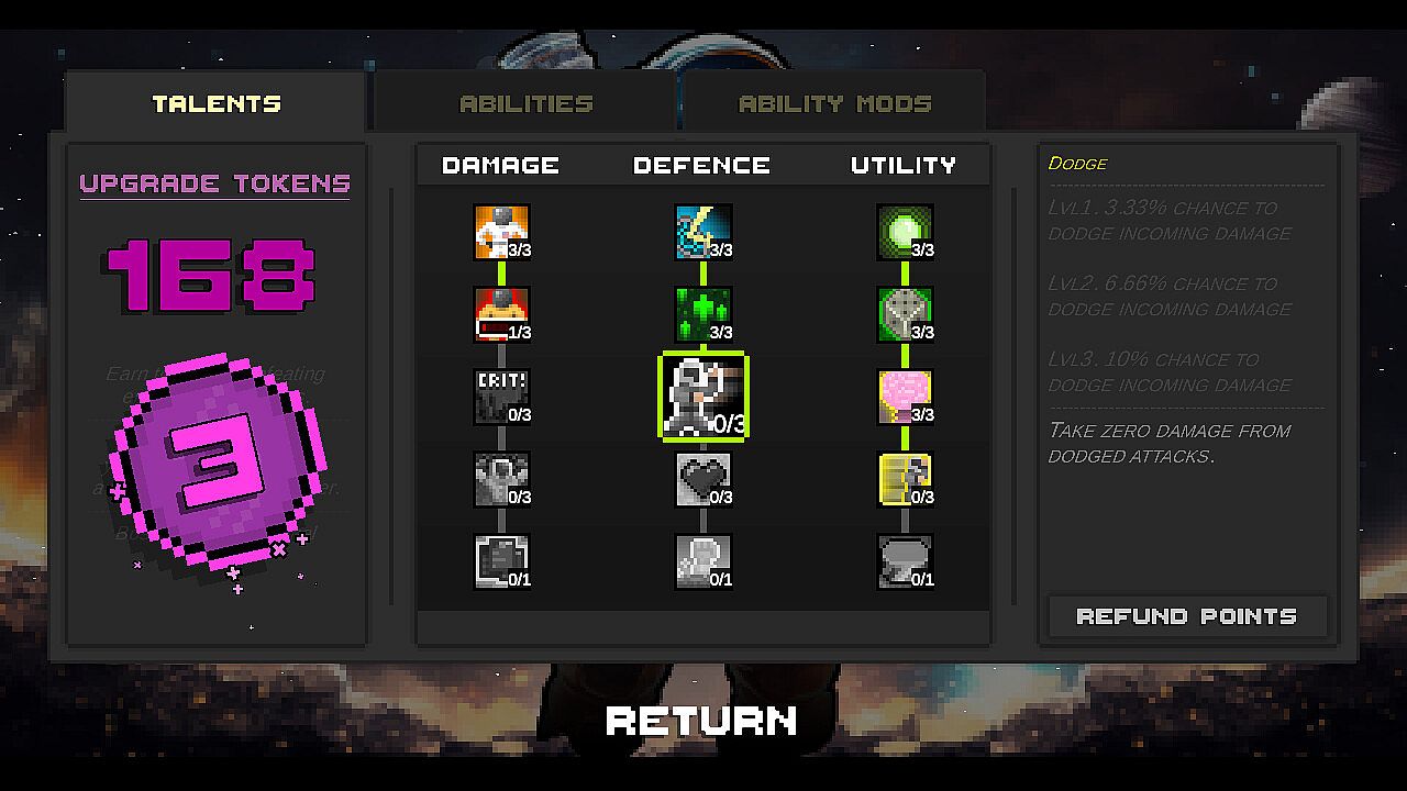 • Spend Upgrade Tokens between runs to buy permanent character upgrades, ability upgrades, and ability mods.