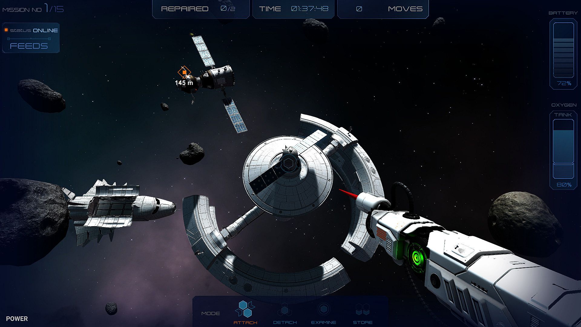 As a rising star of AstrOpticon Corporation, you will discover all the secrets of space mechanics' craft. You'll find out how hard it is to repair in zero gravity while keeping a close eye on resources that disappear in the blink of an eye.