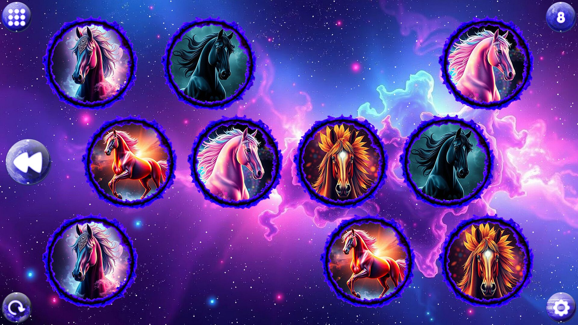 Space Memory: Horses - is a cute and calming game featuring pictures of cool horses in space. This game will test your memory as you try to find matching pairs of horses pictures to complete each level.