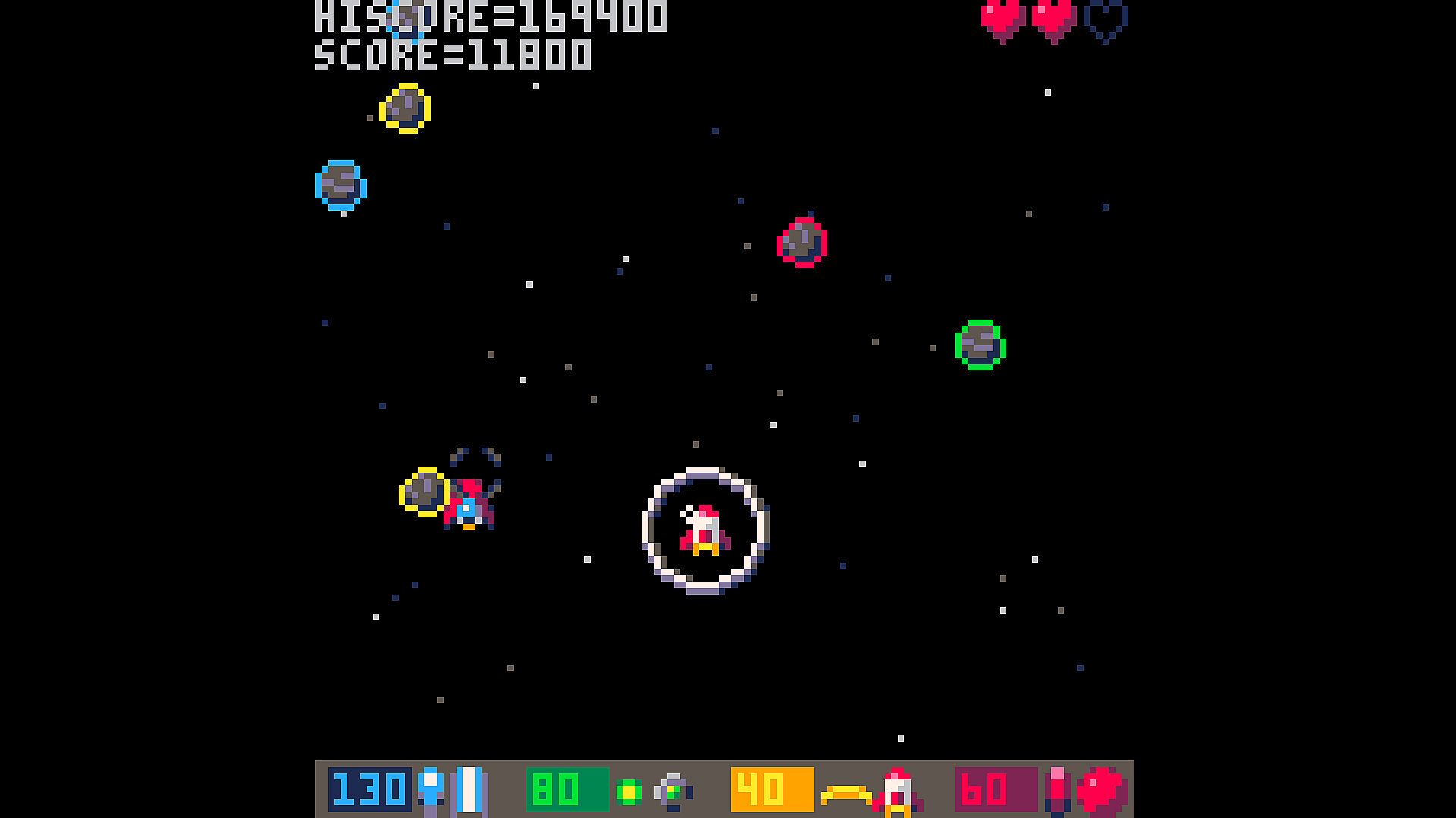 Space Miner is a shmup with roguelike elements and weapon customization. Destroy asteroids, collect different minerals to improve your ship, and discover new places on the galaxy!