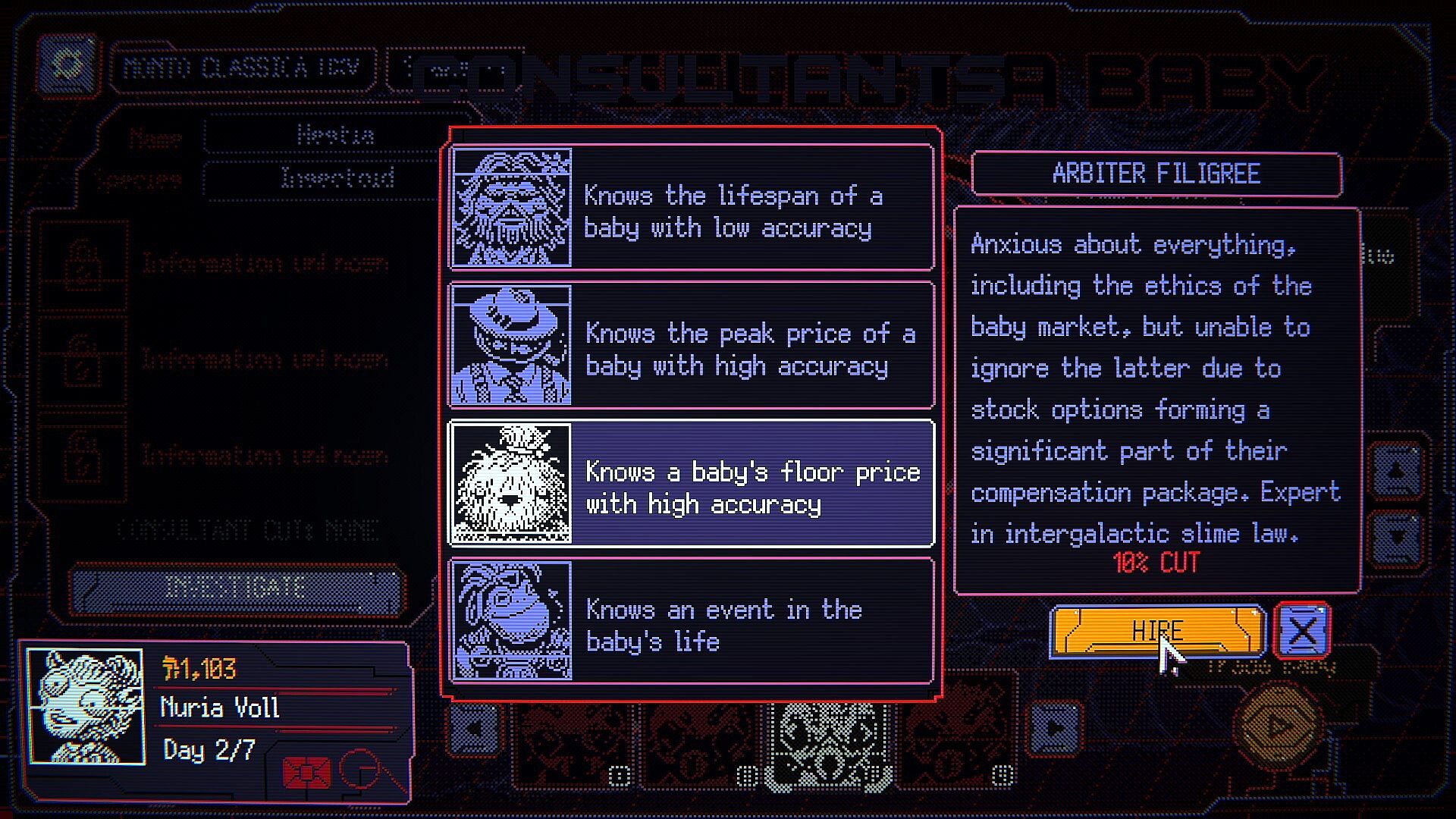 You buy stocks BASED on the simulated lives of babies, profiting from their misery and cashing out the moment they win the Galactic Lottery!
