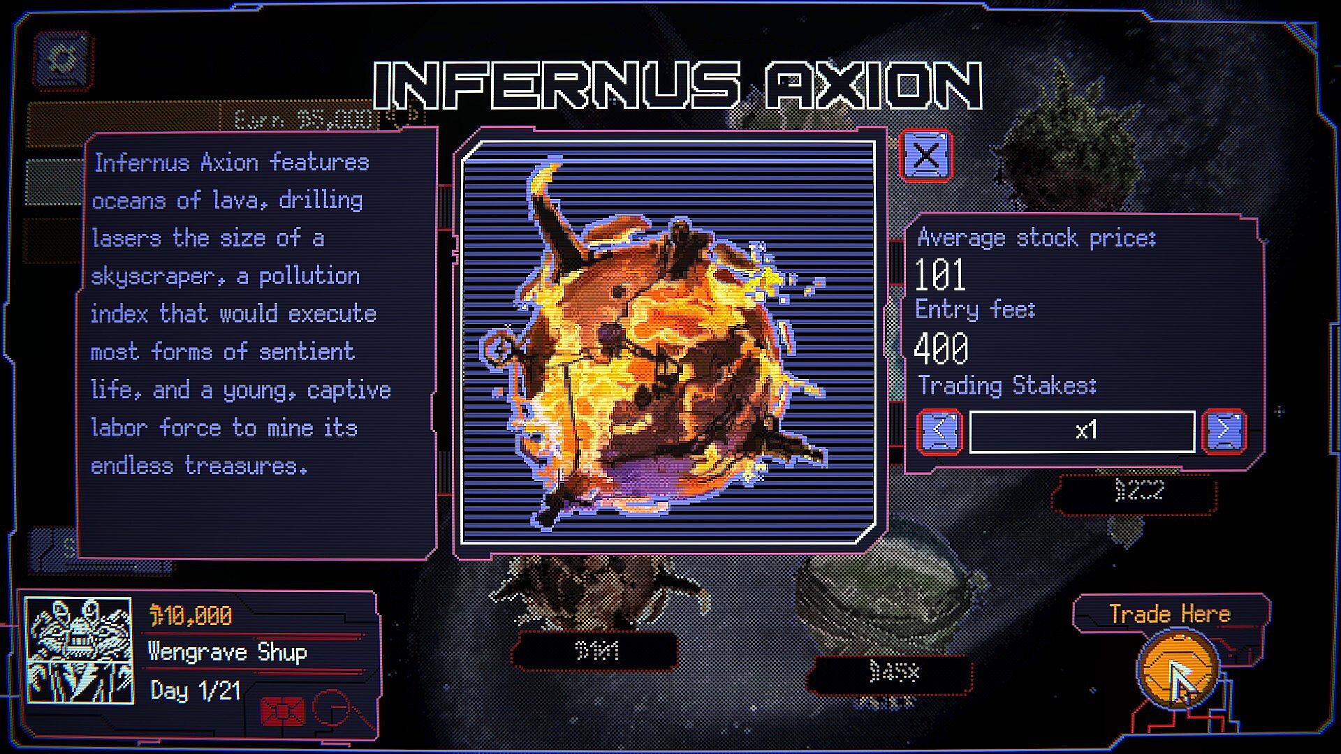 • Seven distinct planets to trade procedurally generated alien baby stocks on, each showcasing unique ideas of what it means to be profitable and productive to society.