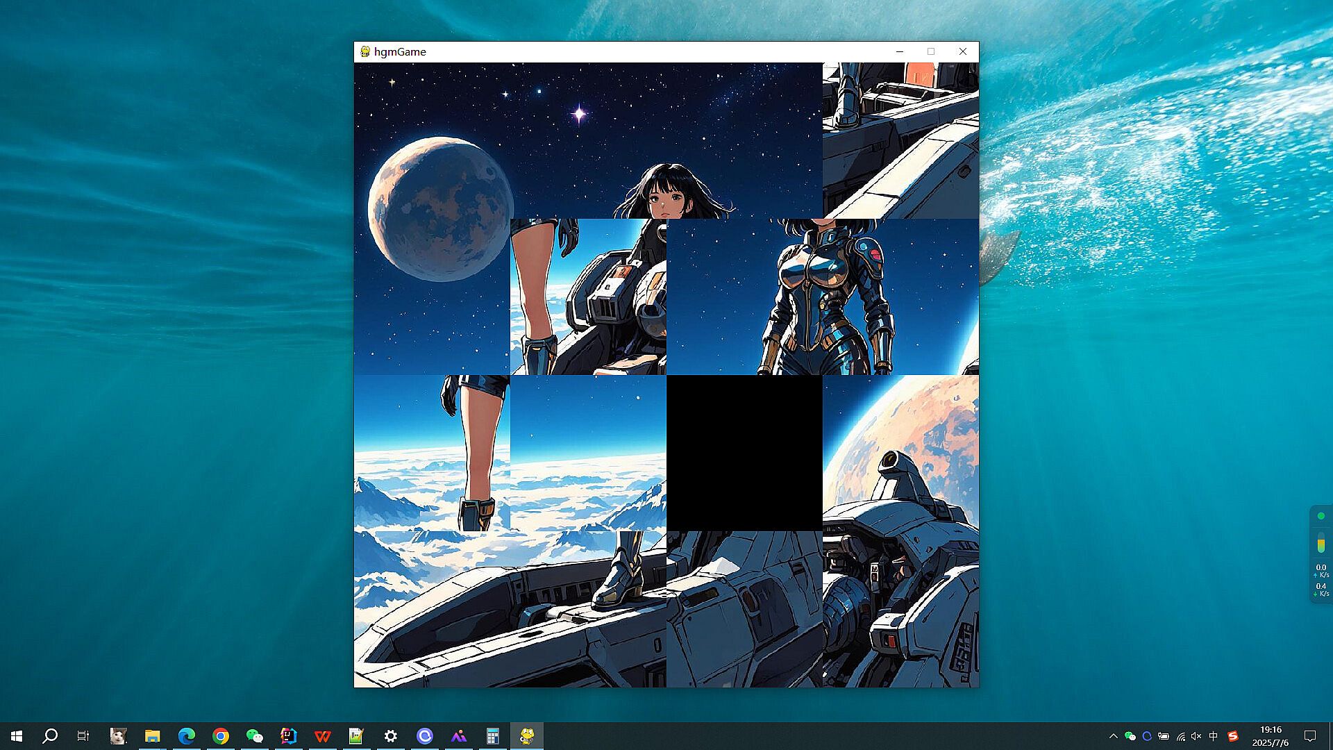 Game steps: Click the left mouse button on the image around the black square, and the image and black square will switch positions. The goal is to assemble all the small images into a complete image. The complete image is as follows: