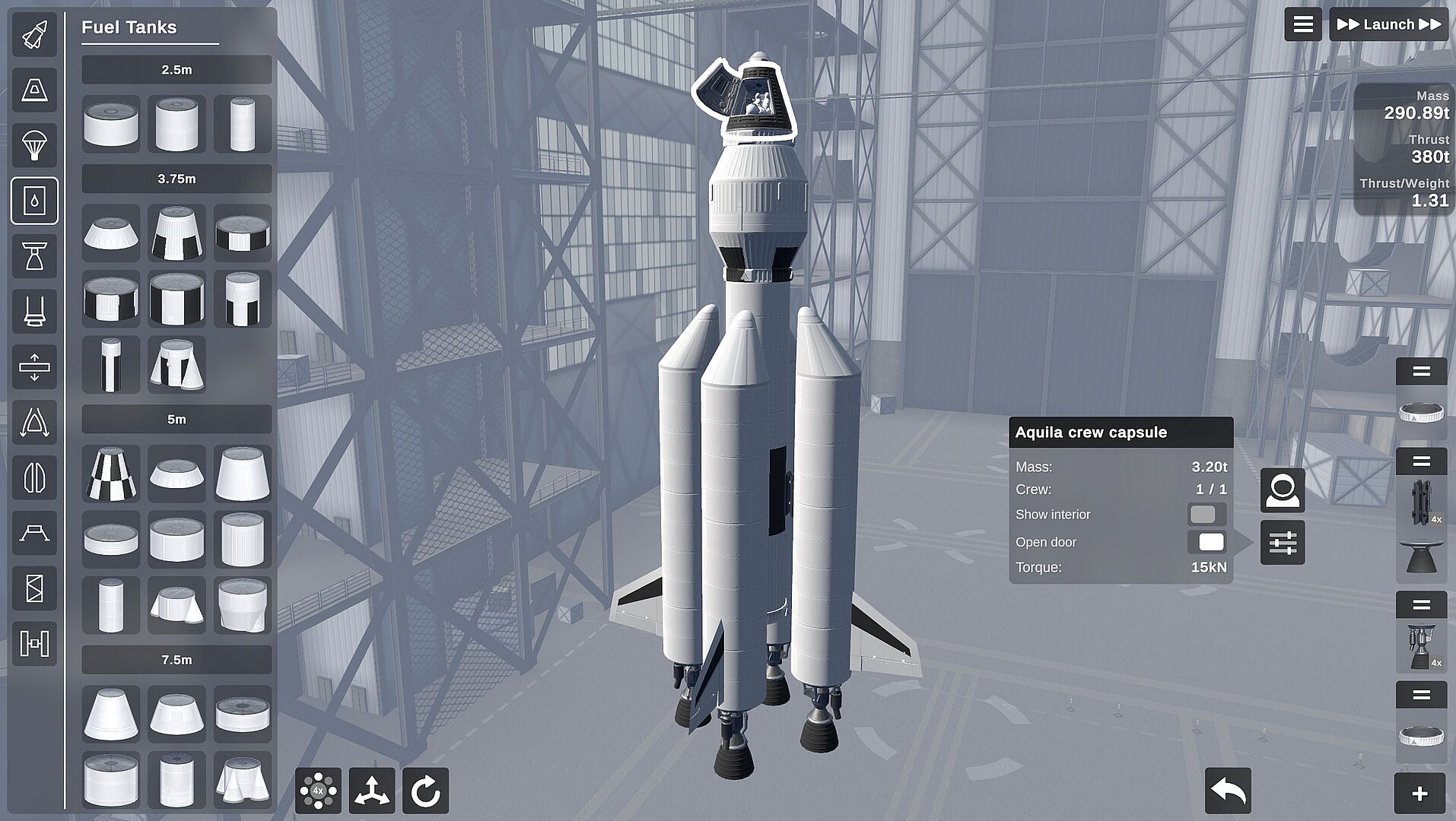• 120+ unique parts to build your spacecraft with, from engines and boosters and fuel tanks, to crew capsules and heatshields and space station modules, to landing legs and parachutes and rover wheels.