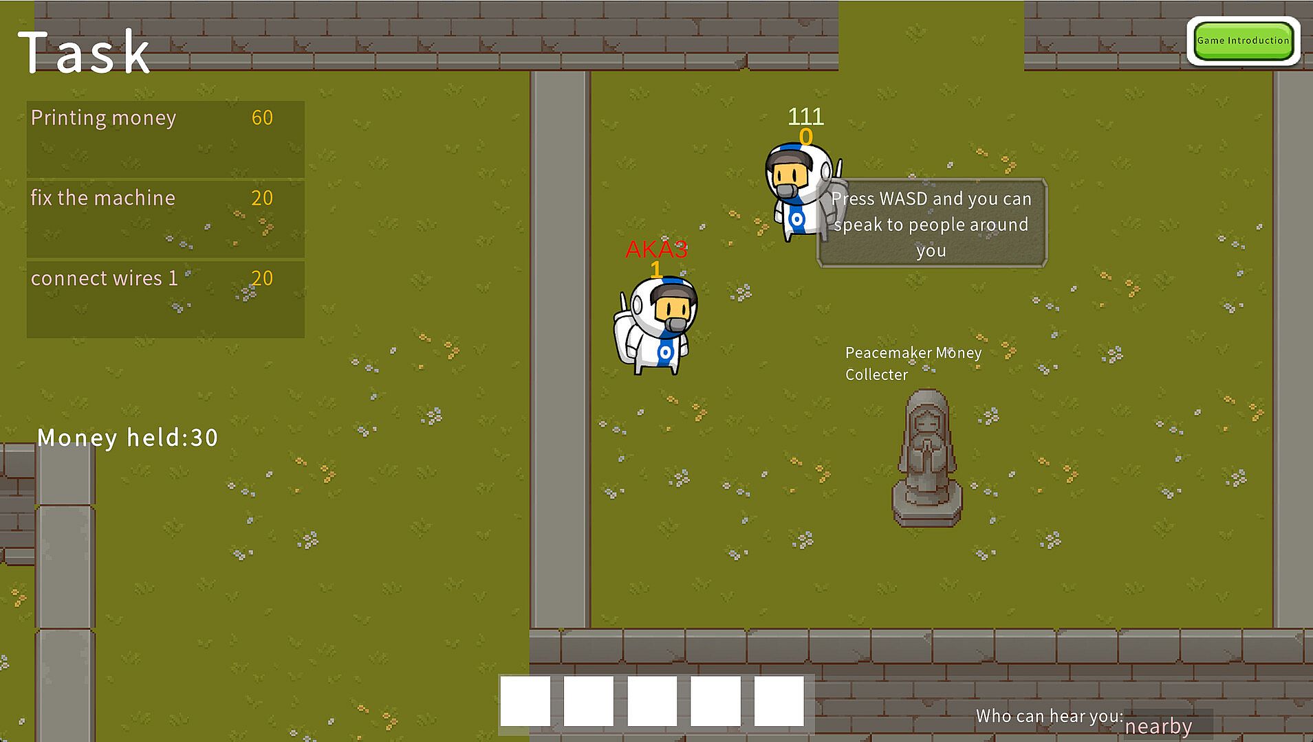 Spaceship Killer is a multiplayer strategy and deduction game. In this game you  Players are divided into two factions: Peacemakers and Hunters. Peacemakers need to donate enough coins or identify and kill the Hunters, while Hunters must disguise themselves as Peacemakers and sabotage them secretly.