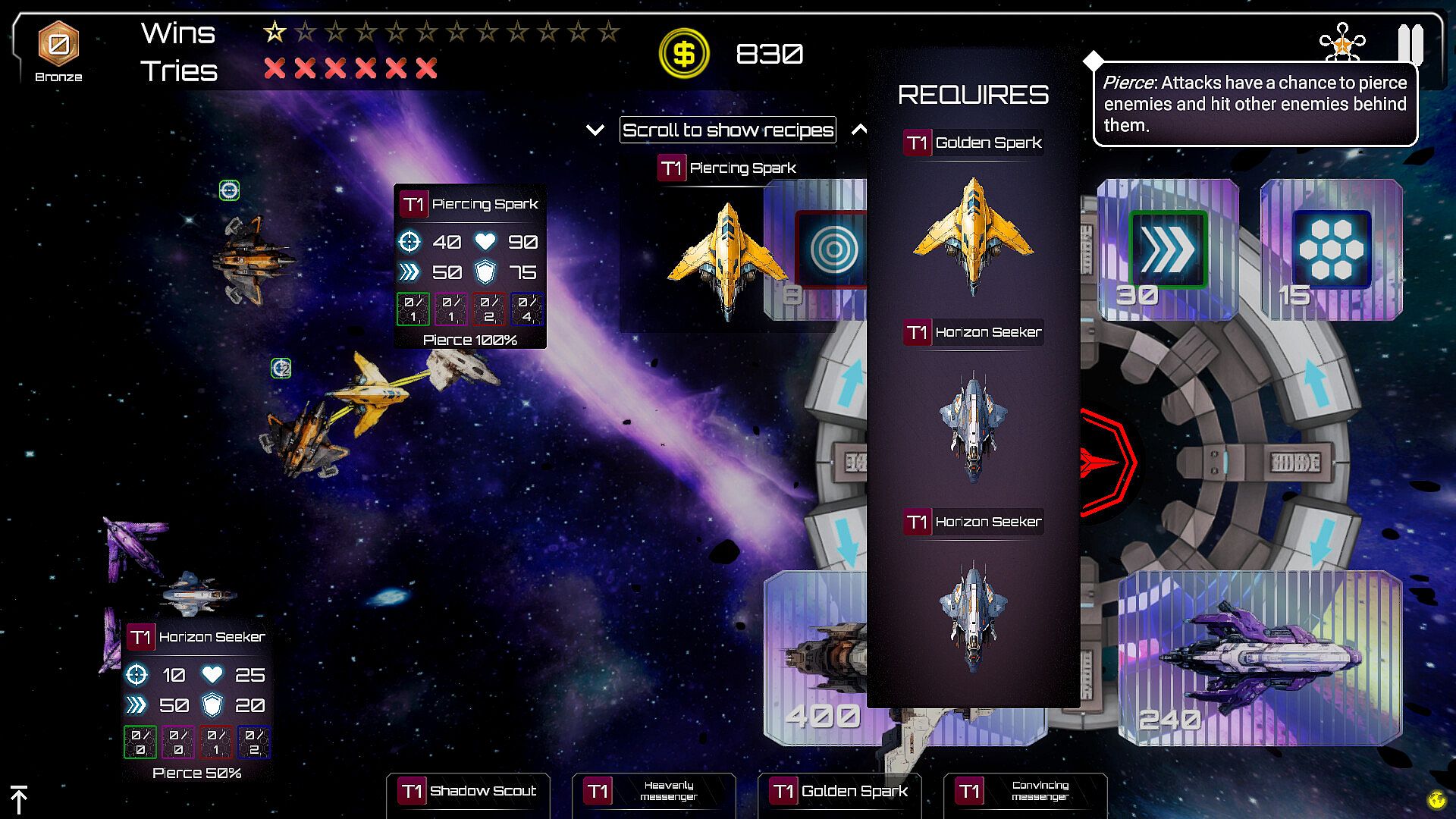 • Fusions: A variety of recipes to combine spaceships so that they fuse into a more powerful version, which can then even have entirely new mechanics.