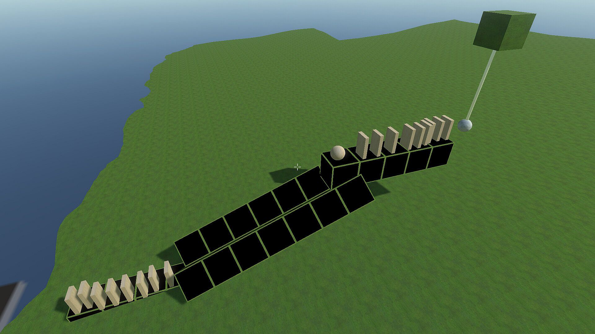 Sky Ball, Ground, Player,Pick Up & Throw, Gravity, Inventory, Launcher, endless terrain, ocean, planet impact, Planet, Sun, Halo, Dominoes, Billiards, Spring, light,teleport,Delete Function, Music, Springs with Multiple Stiffness Coefficients,Wooden Ball, Ramp, Block, Airplane Mode, Exit Menu, Exit the game, fixed perspective when opening the bar, mini-block, pick up optimization, pick up an item, 3d text, icon, spring connection, pendulum connection, scene construction, text and other functions.