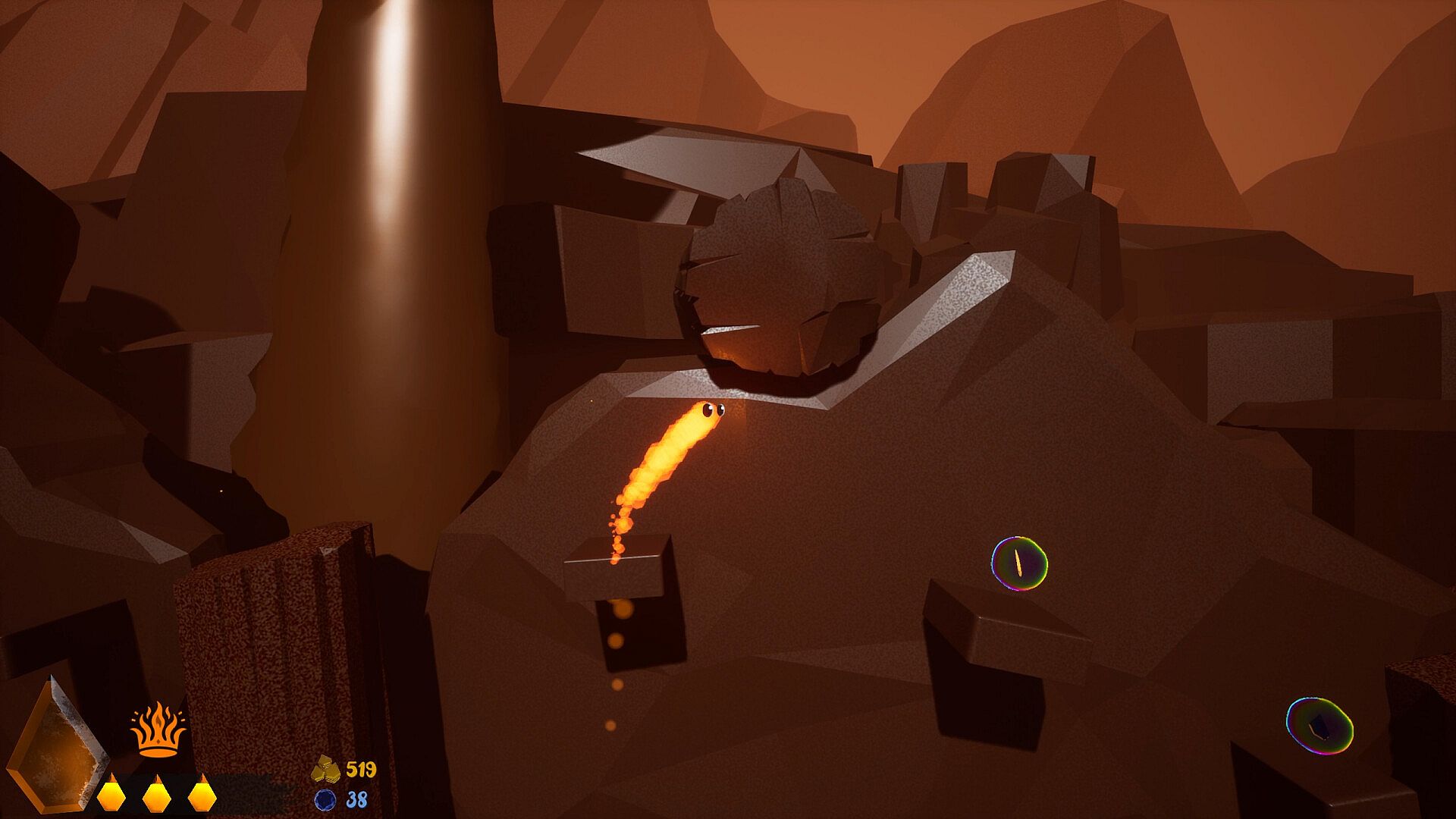 • Fire Sling (Melee): A ball of fire that shoots around the player and slings back.